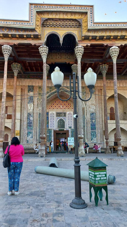 Бухара. Сначала присаживаемся отдохнуть на скамейки музея под открытым небом. Шерзод рассказывает про закрытые колыбельки для младенцев. Сразу предупреждаю, за едой лучше не читать. Младенца в этой колыбельке как-то фиксировали. -А вот это, думаете, что такое? - Шерзод показывает какие-то деревянные то ли палочки, то ли трубочки: У меня они сразу вызвали подозрение и отвращение. В общем, трубочки оказались кало-и- мочеприемниками для девочек и мальчиков (разные). Все это вставлялось в зафиксированного младенца, колыбелька зашторивалась. Так он целый день и лежал в темноте и в трубочках. Мать периодически отрывалась от домашних дел и подходила кормить его грудью прямо в колыбельке. Захотелось это всё скорее развидеть и пойти дальше. А дальше - Мавзолей Чашма-Айюб (источник Айюба): В древних рукописях излагается следующая история. Уставший в странствиях пророк Айюб переправился через Амударью и дошёл до Бухары. Жители города приняли его с почестями. В знак благодарности Айюб произнёс: «О, Боже! Принеси изобилие их потомкам, принеси их врагам поражение, отврати от них смуту!». Он умер в Бухаре именно в этом месте, которое сохранилось и почитаемо доныне как мавзолей; под ним есть источник, по легенде являющийся одним из источников джанната (рая). Говорят, возле него росло дерево, у которого даже зимой листья были зелёными. В другом варианте легенды об Иове (Айюбе) сообщается, что в том месте, где он остановился, от удара посохом о землю забил родник. Его вода считалась целебной, к источнику потянулись многочисленные паломники. Со временем место приобрело статус мазара — места поклонения. Вокруг него появилось кладбище, функционировавшее на протяжении более тысячи лет. Считалось, что вода источника излечивает кожные болезни и даже проказ. Построен мавзолей Чашма-Айюб в 12 или 14 веке Рядом с ним на площади в 2001 г построено здание памяти Исмаила аль-Бухари. Персонаж интересный: Исмаил аль-Бухари – знаменитый богослов, ученый-хадисовед (хадисоведение – наука о хадисах, сообщениях о высказываниях и поступках пророка Мухаммада) и автор второй по значению после Корана книги мусульман «Ал-Жомий ас-Сахих» («Достоверный сборник»). Аль-Бухари родился в 810 году в Бухаре. Известно, что его прадед был одним из первых, кто принял ислам. Его отец был одним из сказителей священных преданий. Когда Аль-Бухари был ещё ребенком, его отец умер. Аль-Бухари остался на попечении матери, которая и воспитала его. Она была образованная женщина, организовавшая обучение мальчика различным наукам. Мухаммад был проницателен, сообразителен, обладал необычайной памятью для его возраста. В возрасте 7 лет он изучил весь Коран, в возрасте 10 лет он знал наизусть несколько тысяч хадисов. В 825 году когда ему было 16 лет, аль-Бухари со своей матерью и старшим братом Ахмедом отправились в хадж в Мекку и Медину. После совершения паломничества мать с братом возвратились в Бухару, а он ещё долгие годы путешествовал по разным мусульманским странам, где учился у известных богословов того времени. По преданию он собрал сотни тысяч хадисов, из которых 300 тысяч знал наизусть. В этих исследованиях он провёл 42 года своей жизни. К написанию своей книги он приступил ещё в Басре и продолжал писать её многие годы, куда вошли, по его словам, хадисы от 1080 знатоков. В его книгу вошли 7275 достоверных хадисо