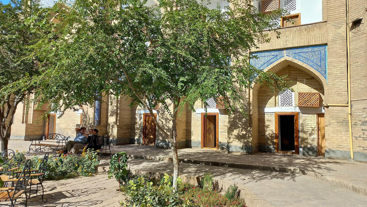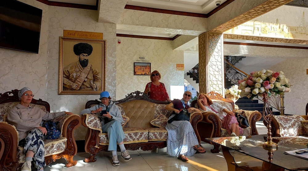 Хива Хива находится в низовьях Аму-Дарьи слева по течению, т.е. уже в Каракумах. В давние-давние времена здесь жило и не тужило процветающее государство Хорезм. Упоминается оно, как и Хива, еще в 6 веке до н.э. Про "не тужило" - это я для красного словца загнула. Кто в те времена, да еще в центральной Азии, не тужил? Постоянно кто-то кого-то завоевывал, границы государств меняли очертания, расширялись, сужались. То же было и с Хорезмом. Сначала его завоевал перс Кир Великий, потом Чингис-Хан, потом Тимур. Столицей Хорезма был Ургенч, который стоял на берегу канала от Аму-Дарьи. Река в давние времена впадала в Каспийское море, но была очень капризна, часто меняла свое русло и в одну из своих истерик в конце концов впала в Арал (где-то в поездке прозвучало, что это древние укры узбеки вырыли ей новое русло). Кто бы к этому не приложил руку, но Ургенчу не повезло. Воды не стало, город зачах, и столицей Хорезма стала Хива, а Хорезм стал называться Хивинским ханством. Произошло это в 16 веке. Но в Российской империи Хивинское ханство продолжали называть Хорезмом. В 19 веке Хорезм попал под протекторат Российской империи, а после революции вошел в состав союза, как Хорезмская ССР, потом распался на 3 части, войдя частями в Туркмению, Узбекистан и Каракалпакию. Внутренний город Хивы - Ичан-Кала, обнесенный мощной крепостной стеной, возник на этом месте еще в 5 веке. Толчком к возникновению города по легенде послужил колодец Хейвак, найденный в Каракумах сыном Ноя. Колодец в крепости, действительно, есть у северо-западной стены Ичан-Калы. При ремонте колодца, были обнаружены следы очень древней каменной кладки и остатки купольного сооружения, прикрытого ныне землёй. Судя по археологическим данным, Хива существовала в V—VI веках, как караван-сарай при колодце Хейвак на древнем торговом пути. Исходя из этого, археологи полагают, что основанием стен Ичан-Калы частично служат остатки древнего фортификационного сооружения вокруг караван-сарая, датируемые пятым веком. Вот в этот Ичан-Кала мы и пойдем после заселения в отель. Немного фото отеля. Он стоит напротив ж/д вокзала: От вокзала до восточных ворот Ичан Кала ведет бульвар чуть больше 1 км с отелями по обеим сторонам. По нему и отправляемся. Мое чихание не остановил антигистамин, принятый в дороге, и поняв, что дело пахнет керосином, начала пить антивирус, но чихать продолжала безостановочно: В крепости у нас поздний обед. За нашим столом оказался альпинист из нашей группы Виктор, который успокаивал меня в горах по поводу оставленного наверху пакета. Его душа требовала праздника: -А не хотите ли выпить коньяка?- спросил он и достал из рюкзака початую бутылку. Все отказались, а я между чиханий сказала, что согласна на пару глотков здоровья для. Бокалов на столе не было, поэтому пили из пиал. К тому же, коньяк был "Ной" как раз в тему Хивы. В общем, всё было аутентично - пиалы с коньяком "Ной" в Хиве, возникшей благодаря сыну Ноя . Выпили. Потом еще. И еще По-моему, соседи начали нам завидовать, но поздно. Початая бутылка закончилась. А я чихать стала через раз. Спасибо, Виктор.