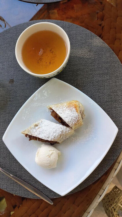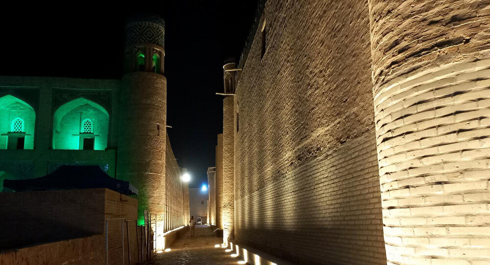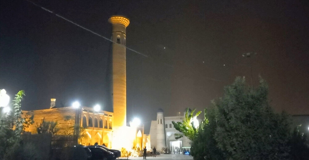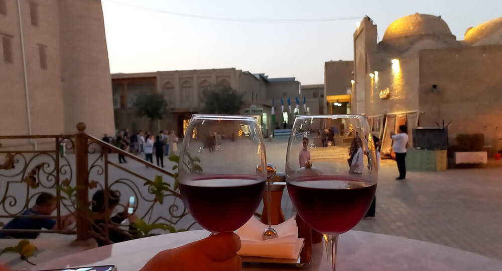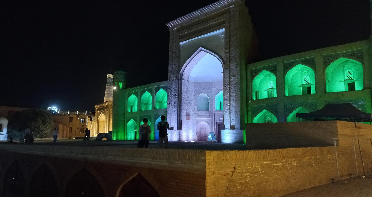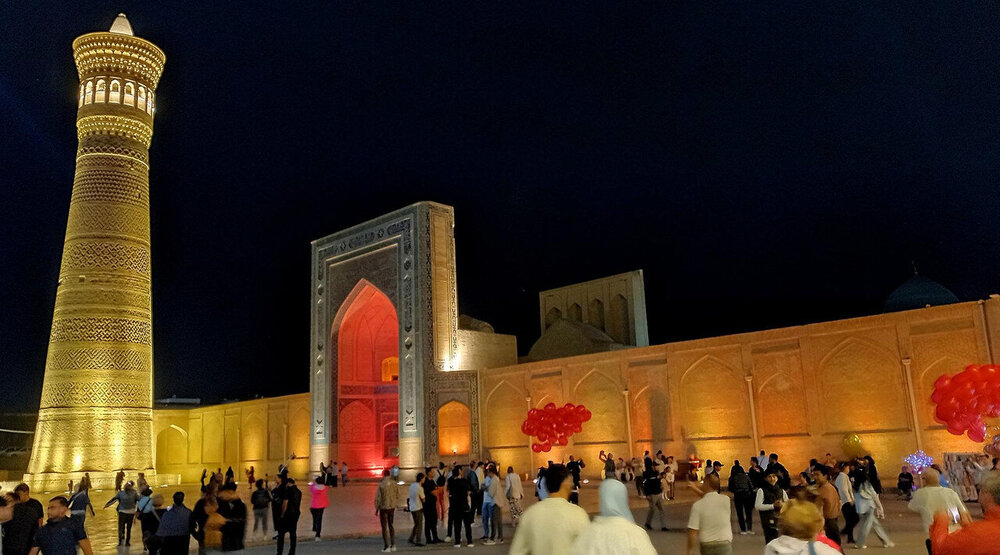 Прощание с Бухарой Из загородной резиденции нас привезли на поздний обед в районе Ляби-Хауз в ресторан под открытым небом. Опять всё сытно и вкусно: шурпа, манты, зеленый чай со штруделем и мороженое: Заехали ненадолго в отель и отправились гулять по вечерней Бухаре. Субботний вечер. Весь исторический центр - практически сплошная пешеходная зона. Сумерки превращаются в ласковый южный вечер, теплый, томный. Много гуляющих - это и туристы, и местные. Среди местных много пожилых женщин. По большей части они сопровождают свою дочь или невестку с внуками, но есть и просто пожилые пары. И, конечно, много молодежи. Торговля допоздна на каждом шагу. Но надо отдать должное узбекам - они не навязывают товар, не завлекают. В разных местах звучит музыка, где-то танцуют. Садимся на открытом подиуме приглянувшегося мне вчера кафе между задней стеной медресе Мири Араб и торгового центра "Купол ювелиров". Заказываем красное сухое вино местного производства: Всё, как я люблю: сидеть среди древних стен, бездумно попивать по глоточку вино, глядя на проходящую мимо разноголосую толпу. Погружаться в мыслях в прошлое этого места и возвращаться в реальность. Рая начинает пританцовывать за столом под восточную мелодию: Повезло мне с попутчицей. В своем Саратове Рая читает меня здесь с подругами: -Рая, спасибо тебе за наши дружные, веселые вечера! Неожиданно город погружается в темноту. Что-то с электричеством. Паники нет. Даже интересно - наверно, так выглядели эти стены ночью в средние века: Минут через десять появился свет, заиграла музыка: Пошли дальше, в сторону Ляби-хауза. Народа на улице еще больше: Облюбовали другое заведение: и вечер опять получился душевным. Из всей поездки больше всего на душу легла Бухара. Ташкент было интересно увидеть, и вечера были в нем вкусные и яркие. Но в целом, Ташкент остался в памяти фоном, на котором сверкали яркие звезды: Самарканд, Бухара, Хива. И самая яркая звездочка из них - Бухара. Самарканд тоже очень понравился, удивил, восхитил своей древностью. Но его древность - музейная, что ли: во-первых, по входному билету, во-вторых, там, в древности его, ты не живешь, а просто смотришь, ну и разве что, стены можешь потрогать руками. А в Бухаре мы оказались в древнем городе - не музейном, а настоящем. И этот город жил, пел, танцевал, поил, кормил, торговал. Почти все туристические объекты находились в пешей доступности. По дороге в отель впитывали в себя напоследок виды, запахи, звуки полюбившейся Бухары: