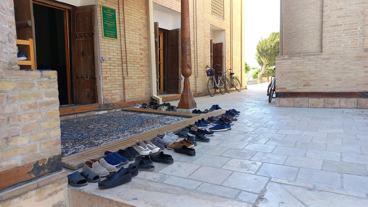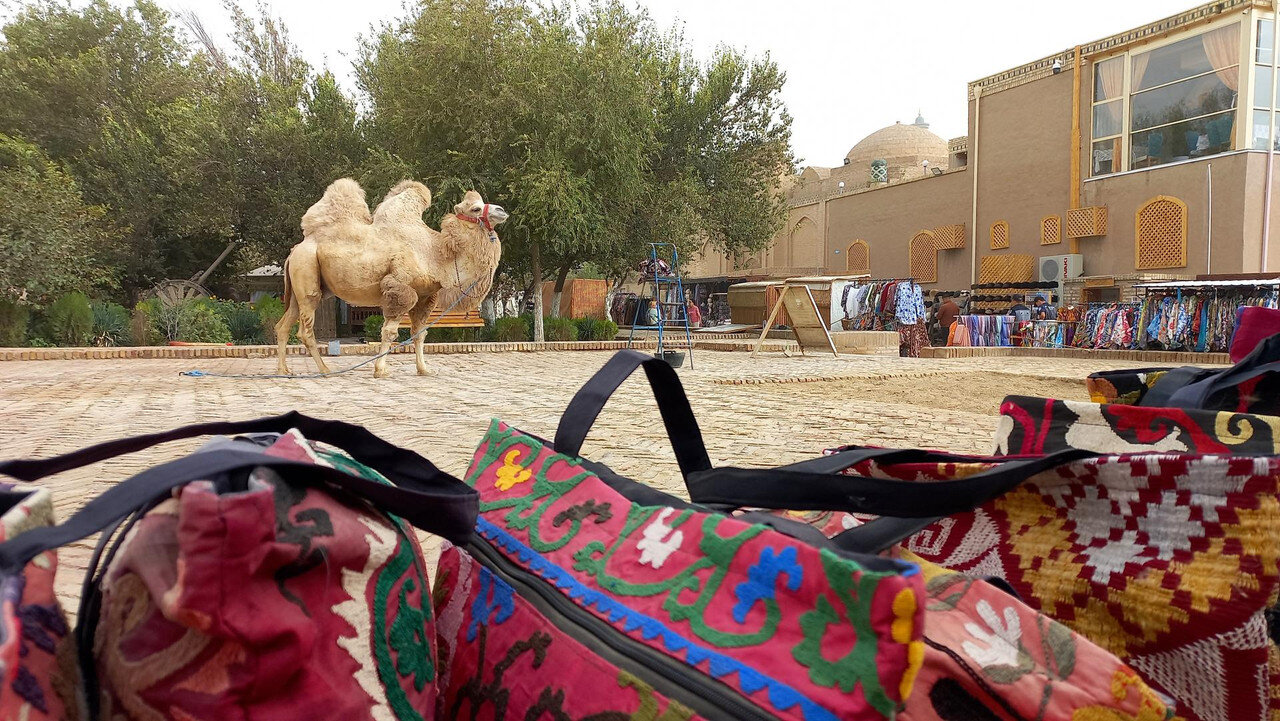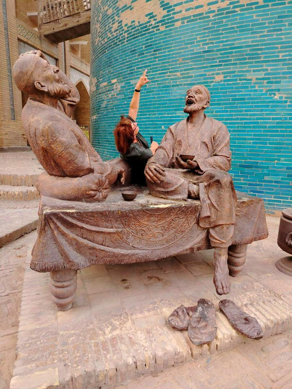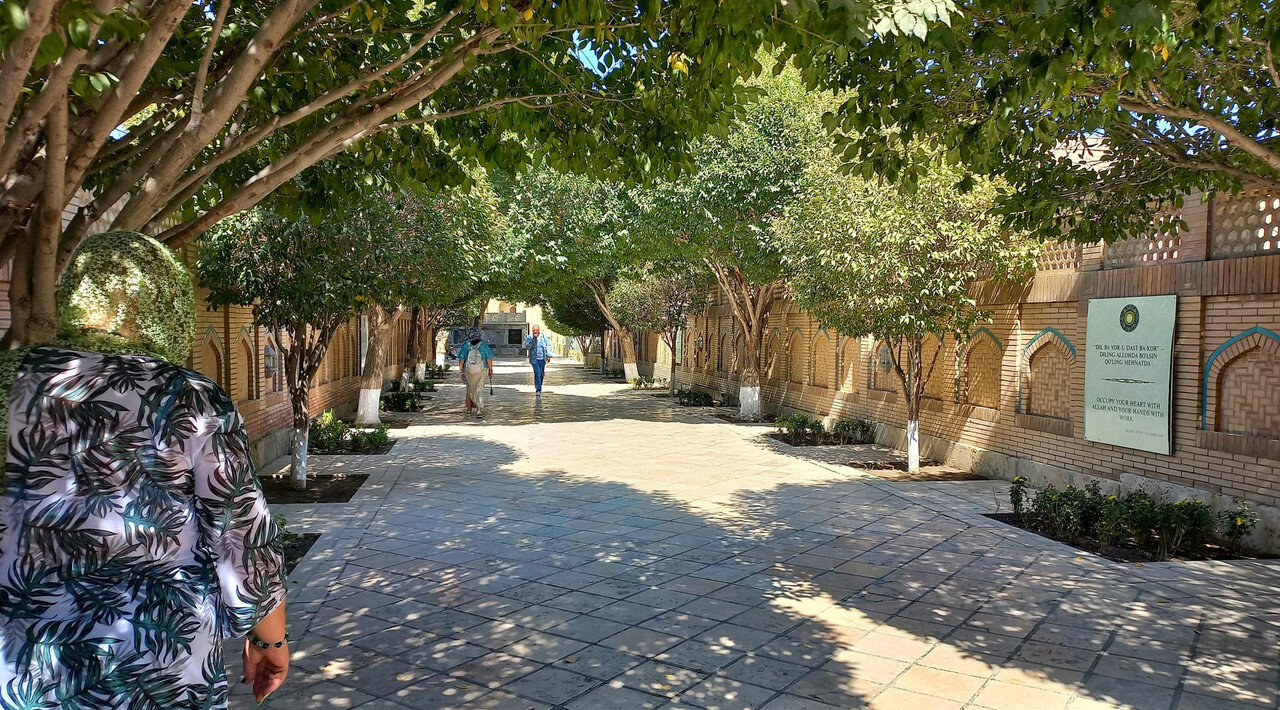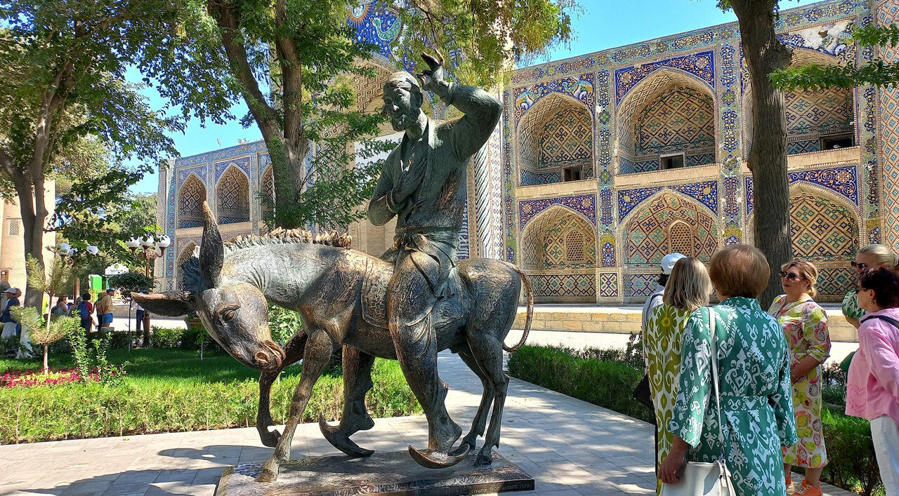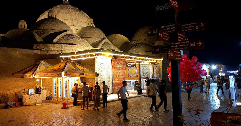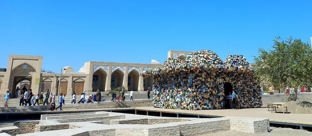 Биеннале. Вернемся к странному сооружению из кастрюль на нашем пути: Ночных горшков среди кастрюль не наблюдалось, а во взгляде издали они напрашивались Оказалось, в Бухаре с 5 сентября по 20 ноября 2025 г. проходит биеннале современного искусства. Из узбекской прессы: Биеннале стала дебютной для Бухары и первой подобного масштаба и уровня организации для Узбекистана. Центральная часть выставки развернулась в сердце Старого города. Инсталляции разместили в ансамбле Ходжа-Гавкушон, в караван-сараях Айозжон, Улугбек тамокифуруш, Ахмаджон, Фотхулладжон и медресе Рашид. Все эти исторические здания, ранее закрытые для публики, были отреставрированы и стали частью нового культурного района Бухары, получившего название «Творческий город ремёсел и народного искусства». (перечисленные караван-сараи стоят за сооружением из кастрюль) «Наша цель — не просто наполнить эти пространства на несколько недель. Мы хотим, чтобы биеннале принесла пользу жителям Бухары уже сейчас и создала долгосрочные, значимые изменения. Мы строим наследие, которое заново соединяет Бухару с внешним миром и в то же время укрепляет жизнь самого города. Это пример национальной стратегии, где культура, креативная экономика и наследие находятся в самом сердце развития», — отметила комиссар биеннале и председатель Фонда развития культуры и искусства Гаянэ Умерова. Тема биеннале «Рецепты для разбитых сердец» обращается к идее исцеления через искусство, ремесло и гастрономию и вдохновлена легендой об учёном Ибн Сине. Согласно преданию, он приготовил особое блюдо - плов, чтобы исцелить от печали и болезни молодого принца, страдавшего от разбитого сердца. Этот образ «рецепта для души и тела» лёг в основу концепции биеннале: «каждое произведение и событие здесь становится частью символического общего пира, где искусство и еда соединяются в опыт заботы и восстановления». Фоторепортаж здесь (красочно, посмотрите): https://www.gazeta.uz/ru/2025/09/09/bukhara-biennale/ Несколько фото оттуда: По информации Шерзода: Бухара была вся «причесана» при подготовке к биеннале, так же, как и Самарканд в ожидании саммита ШОС. Вот, как описывает один автор свои впечатления от артобъекта: https://dzen.ru/a/aQyjyz8tRjSSiVR9 "Посудная лавка. Так я про себя назвала этот объект. Эту инсталляцию невозможно не заметить, она большая, яркая и всегда окружена толпой народа (мы толпы не заметили). Дом, купол и фасад которого покрыт эмалированной посудой — чайниками, кастрюлями, мисками. Входишь внутрь, а там иная картина, стены украшены керамическими тарелками, свет мягкий, дом внутри будто светится. Для меня это было как изменение ритма жизни. Сначала визуально — блеск, движение солнечных бликов; затем — внутреннее пространство, где керамика уже говорит о ремесле. Приходит мысль о том, что посуда может быть не просто утилитарной, а основой визуального сюжета. Работа исследует тему домашнего пространства, материальной памяти и смены культурных пластов. Керамика и эмаль — символы повседневности, которые превращаются в визуальный код общих воспоминаний» *** О, как! Понятно? Для меня это что-то из области аромата фиалок, собранных девственницей в ночь полнолуния. Нотки которого я так и не могу до сих пор уловить в вине . Читала автора дальше, сначала скептически, но вдруг поняла, что я начинаю понимать ее ощущения. И пожалела, что толком н