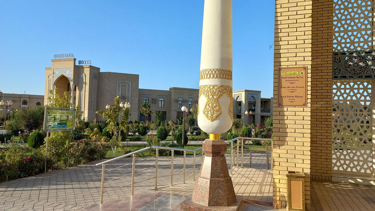 Хива Хива находится в низовьях Аму-Дарьи слева по течению, т.е. уже в Каракумах. В давние-давние времена здесь жило и не тужило процветающее государство Хорезм. Упоминается оно, как и Хива, еще в 6 веке до н.э. Про "не тужило" - это я для красного словца загнула. Кто в те времена, да еще в центральной Азии, не тужил? Постоянно кто-то кого-то завоевывал, границы государств меняли очертания, расширялись, сужались. То же было и с Хорезмом. Сначала его завоевал перс Кир Великий, потом Чингис-Хан, потом Тимур. Столицей Хорезма был Ургенч, который стоял на берегу канала от Аму-Дарьи. Река в давние времена впадала в Каспийское море, но была очень капризна, часто меняла свое русло и в одну из своих истерик в конце концов впала в Арал (где-то в поездке прозвучало, что это древние укры узбеки вырыли ей новое русло). Кто бы к этому не приложил руку, но Ургенчу не повезло. Воды не стало, город зачах, и столицей Хорезма стала Хива, а Хорезм стал называться Хивинским ханством. Произошло это в 16 веке. Но в Российской империи Хивинское ханство продолжали называть Хорезмом. В 19 веке Хорезм попал под протекторат Российской империи, а после революции вошел в состав союза, как Хорезмская ССР, потом распался на 3 части, войдя частями в Туркмению, Узбекистан и Каракалпакию. Внутренний город Хивы - Ичан-Кала, обнесенный мощной крепостной стеной, возник на этом месте еще в 5 веке. Толчком к возникновению города по легенде послужил колодец Хейвак, найденный в Каракумах сыном Ноя. Колодец в крепости, действительно, есть у северо-западной стены Ичан-Калы. При ремонте колодца, были обнаружены следы очень древней каменной кладки и остатки купольного сооружения, прикрытого ныне землёй. Судя по археологическим данным, Хива существовала в V—VI веках, как караван-сарай при колодце Хейвак на древнем торговом пути. Исходя из этого, археологи полагают, что основанием стен Ичан-Калы частично служат остатки древнего фортификационного сооружения вокруг караван-сарая, датируемые пятым веком. Вот в этот Ичан-Кала мы и пойдем после заселения в отель. Немного фото отеля. Он стоит напротив ж/д вокзала: От вокзала до восточных ворот Ичан Кала ведет бульвар чуть больше 1 км с отелями по обеим сторонам. По нему и отправляемся. Мое чихание не остановил антигистамин, принятый в дороге, и поняв, что дело пахнет керосином, начала пить антивирус, но чихать продолжала безостановочно: В крепости у нас поздний обед. За нашим столом оказался альпинист из нашей группы Виктор, который успокаивал меня в горах по поводу оставленного наверху пакета. Его душа требовала праздника: -А не хотите ли выпить коньяка?- спросил он и достал из рюкзака початую бутылку. Все отказались, а я между чиханий сказала, что согласна на пару глотков здоровья для. Бокалов на столе не было, поэтому пили из пиал. К тому же, коньяк был "Ной" как раз в тему Хивы. В общем, всё было аутентично - пиалы с коньяком "Ной" в Хиве, возникшей благодаря сыну Ноя . Выпили. Потом еще. И еще По-моему, соседи начали нам завидовать, но поздно. Початая бутылка закончилась. А я чихать стала через раз. Спасибо, Виктор.