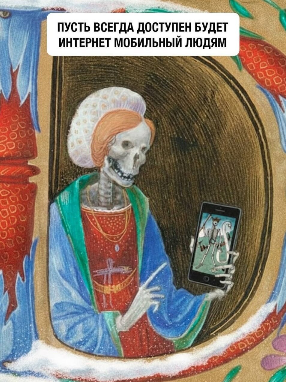 Эх, кто мы такие, чтобы перечить НашемуВсю? 😃 Тем более сам Он отсутствие снега переносит спокойно, стоит стоически, даже без кружки. На следующей неделе поищу на другой стороне Урала, в Челябинске. Может подвезут 😇. А пока на дворе всё тот же месяц непонябрь, но уже с ёлками. Но мы не расстраиваемся. Пока в ожидании снега можно заняться новогодним оформлением своих хором и пенатов. Тем более что одна соцсеть уже подкинула пожелания на 2026 год от средневековых живописцев. Хоть прям сейчас в печать и рамочку 😁. Для Ижевска особенно актуально. У нас оной сетки информационной в смартфонах нет не только на время тревог - а вообще с конца июля. Спасают только WiFi, стационарные компьютеры - или выезд на окраины города. Так что да. Пусть снег обеспечит - и закопает 😁.