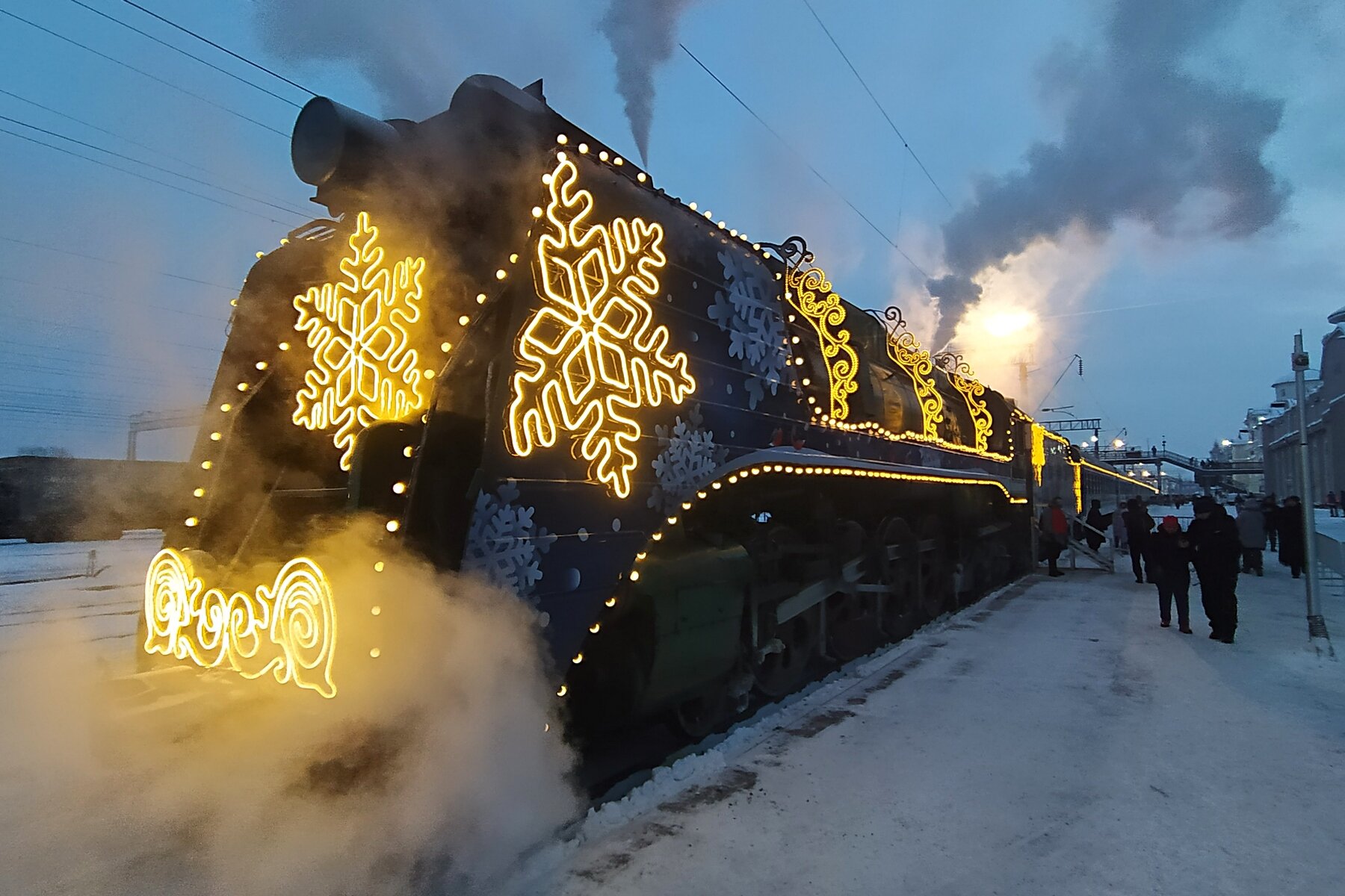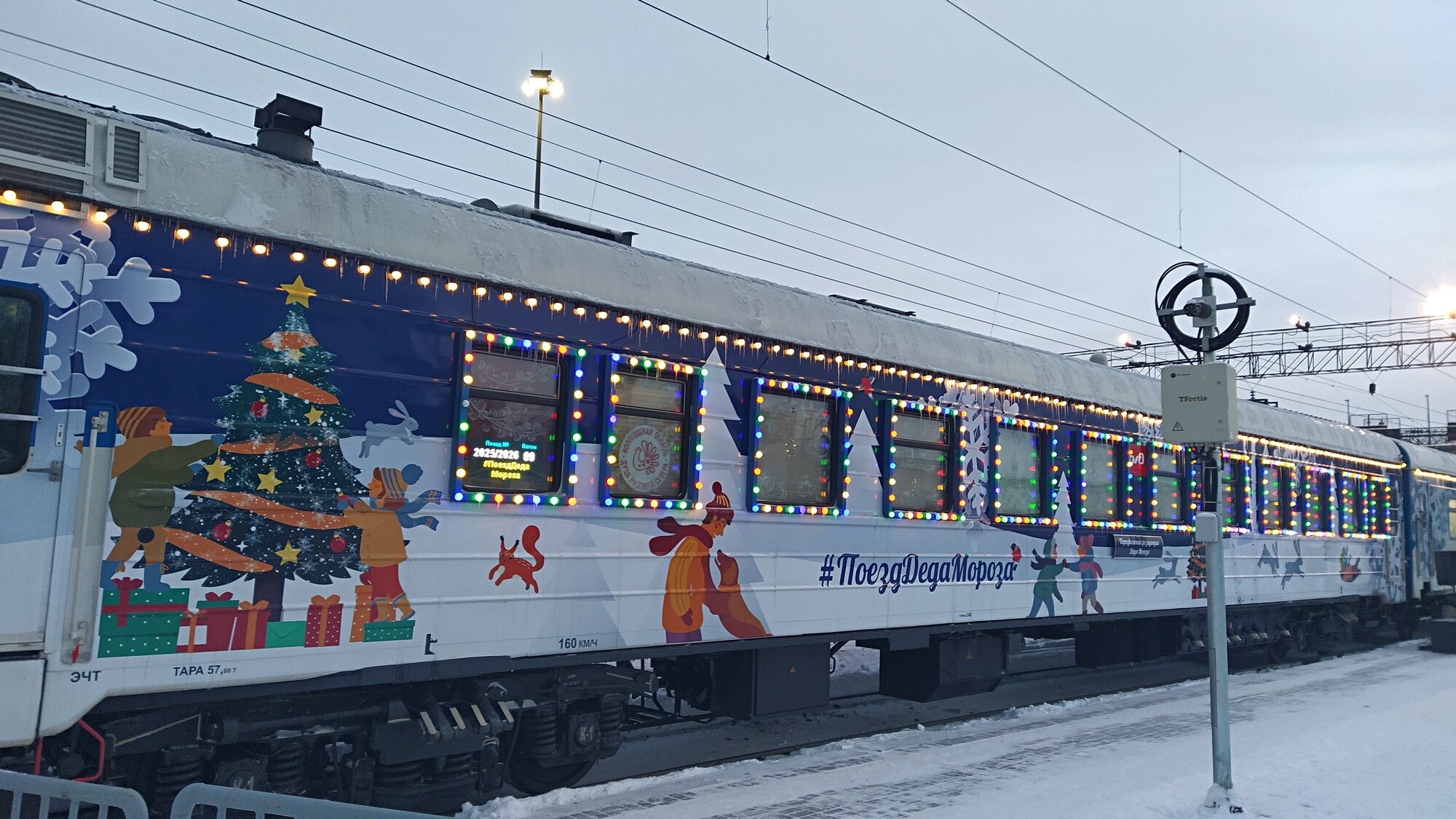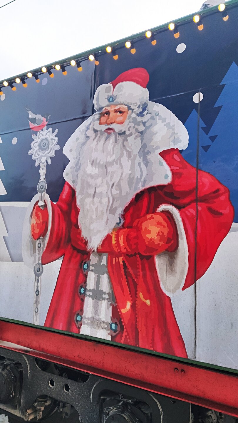 У нас в Ижевске тоже все украшения уже не первый год одни и те же - видать, в нынешние времена почти везде особо не до креатива. Но тем не менее, одно яркое событие у нас произошло вчера. Аккурат накануне Рождества по григорианскому календарю, которое у нас традиционно называется "католическим". (И хотя это строго говоря не так, 25 декабря рождество празднуют не одни католики - но языковая традиция есть языковая традиция 😇). В общем, вчера на наш ижевский вокзал прибыл Поезд Деда Мороза. Поезд ДМ.mp4 Сказочный дедушка по какому-то сказочному же совпадению привёз в Ижевск и настоящую новогоднюю морозную погоду. Которая после многодневных снегопадов и неизвестного числа выпавших снежных норм сама по себе стала праздником. Правда, одновременно и заставила засомневаться - ехать к этому поезду или нет. Тем более что оный мной два с половиной года назад уже посещался на его летней музейной стоянке в Сортавала. Но всё же поехал - и не пожалел. В своём "рабочем" виде поезд Деда Мороза оказался немножечко подлиннее себя музейного. Раза так в 3-4. Всего в нём больше 20 вагонов, правда половина из них - просто дома на колёсах для самого Дедушки, а также Снегурочки и их многочисленной свиты. Но и они хороши собой внешне. Новогоднее настроение, задержанное рабочими предновогодними авралами, кажется, решило таки появиться 😁. Внутрь я почти не заходил: что-то посмотрел ещё в Карелии, где-то нужны были билеты, традиционно проданные практически сразу и давным-давно. А где-то просто не хотелось удлиннять собой томящуюся на двадцатиградусном морозе очередь из ребятишек. Ну а для детворы тут были праздничные вагоны (и представления) на любой вкус. Не забывает поезд напоминать и о вологодских корнях Дедушки - одновременно рождая в душе ностальгию по моих северным маршрутам нынешнего лета. В этом вагоне - новогоднее кафе. А лисички стерегут (или обносят?) Новогоднюю Лавку 😀 Отдельная достопримечательность состава - украсно украшенный паровоз, не знавший отбоя от желающих себя рядом с ним запечатлеть. Судя по всему, волшебный поезд нынче отмечает первый маленький юбилей - пятилетие. От нас новогодний состав отправился в Пермь, ну а дальше его маршрут проляжет через Киров, Кострому, Ярославль, Москву - и в последний день новогодних каникул завершится в Великом Устюге. И мне кажется, даже не участвуя в представлениях просто побывав рядом с ним, праздник в своей душе - и маленькое, но такое необходимое чудо - почувствуют даже многие взрослые люди...
