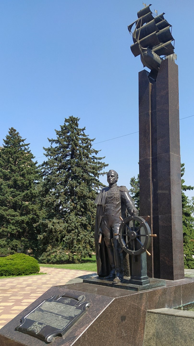 А - АЗОВ Первое завоевание Петра Великого. Первая попытка Петра выйти к морю - название которому созвучно с названием города. Пусть маленькому, мелкому - но МОРЮ. Многие на форуме его бы очень поняли 😁. Побывал я там лет пять назад на обратном пути из Ейска. Очень проездом. Так что хватило времени лишь немного пофотографировать центр. Выше - Пётр и его соратник, первый русский генералиссимус Шеин. В центре есть не только классическая, но и современная скульптура. Не исключая и царя 😁. Запомнился Ильич, как будто вылезающий словно Чужой из коробки из-под холодильника 😁. И памятник адмиралу Лазареву - одному из открывателей Антарктиды и герою Наваринского боя с турецким флотом. Привет из другого города на А 😇. От памятника - вид на кусочек Дона. Устье которого совсем недалеко - километрах в 15.