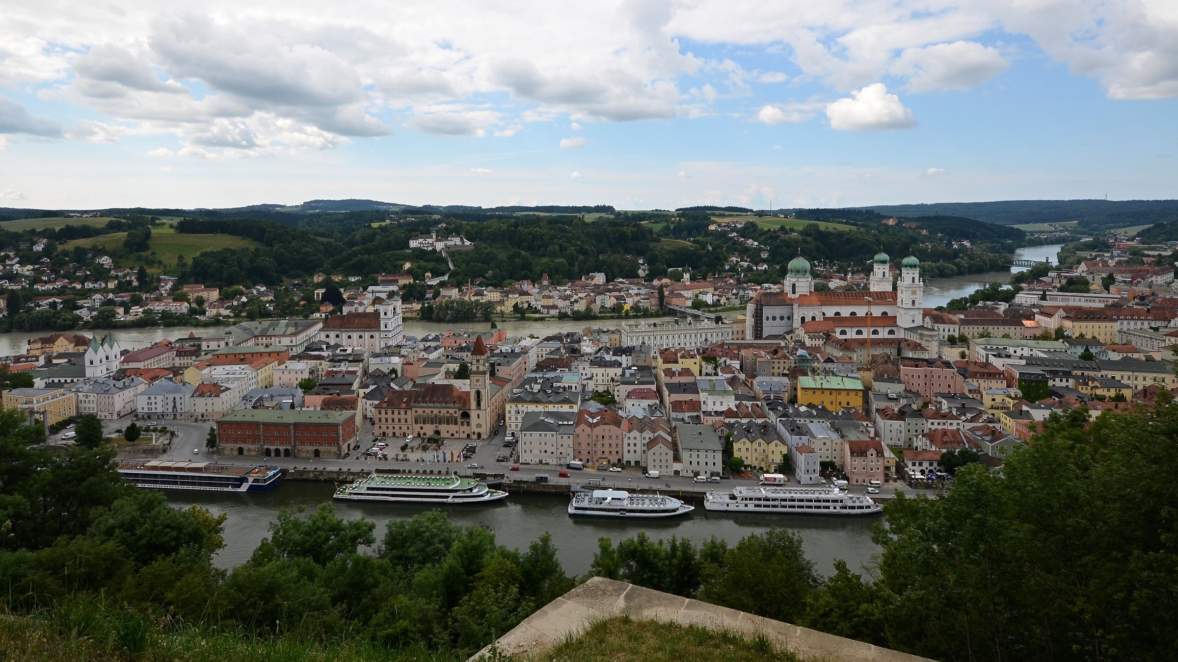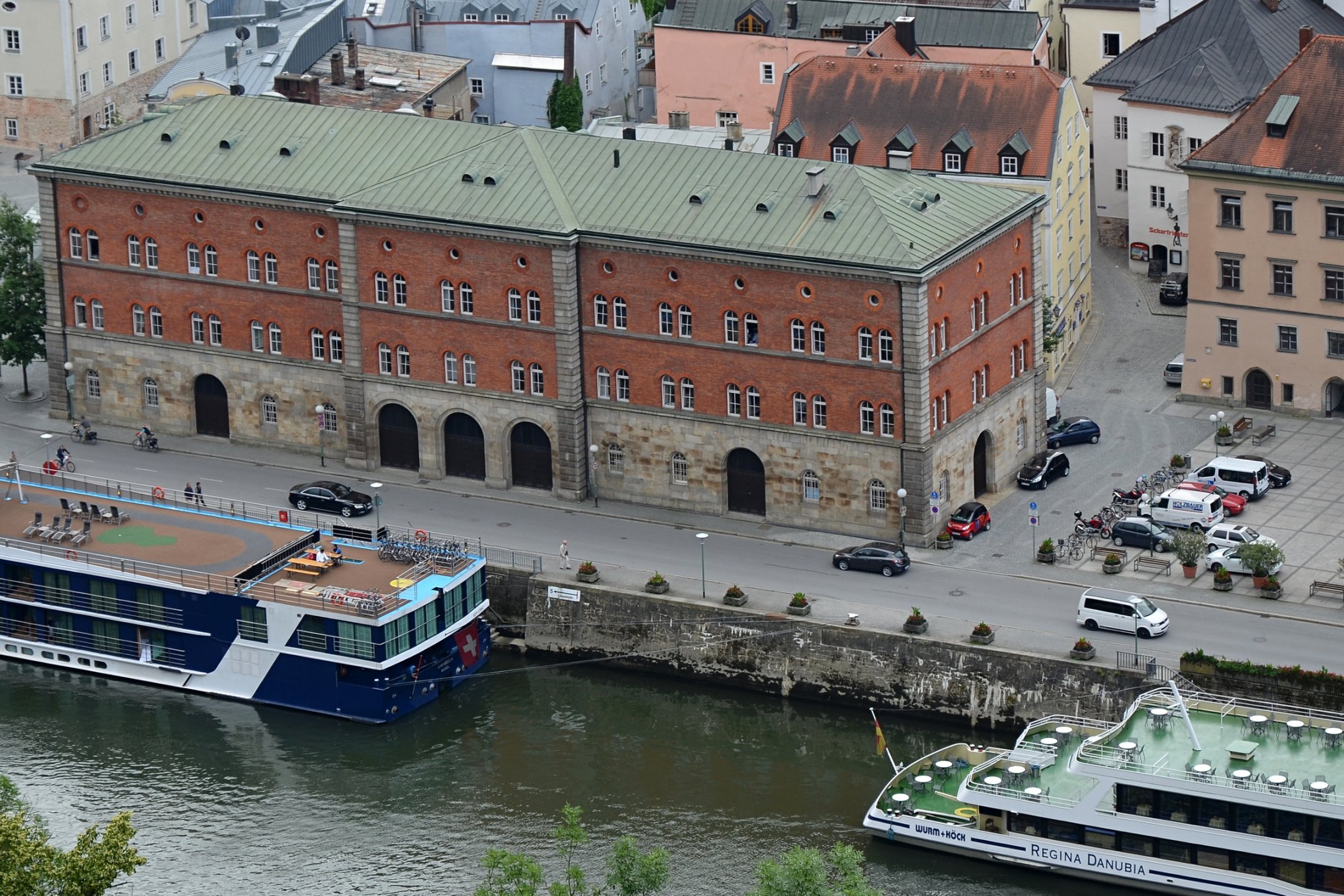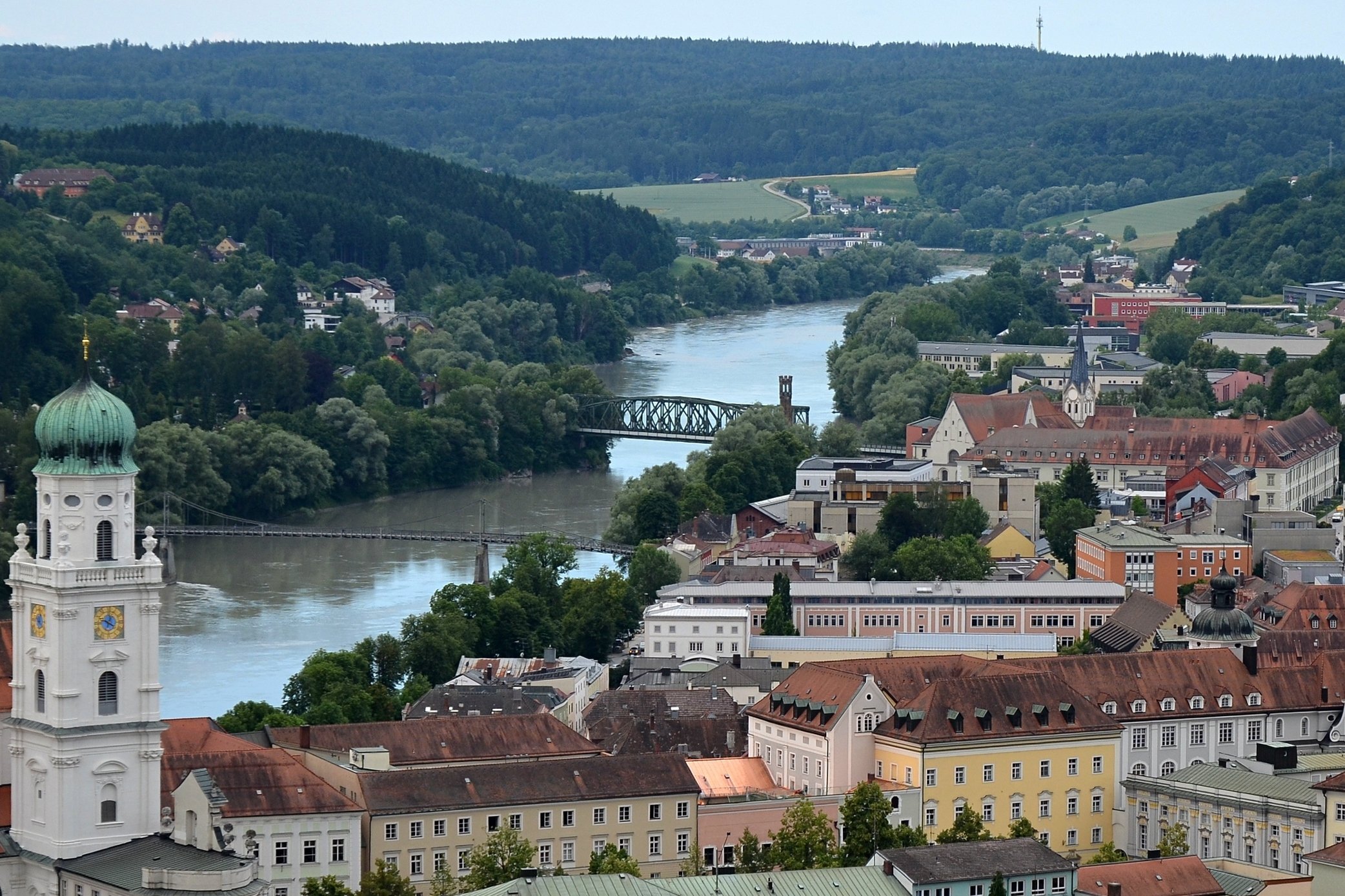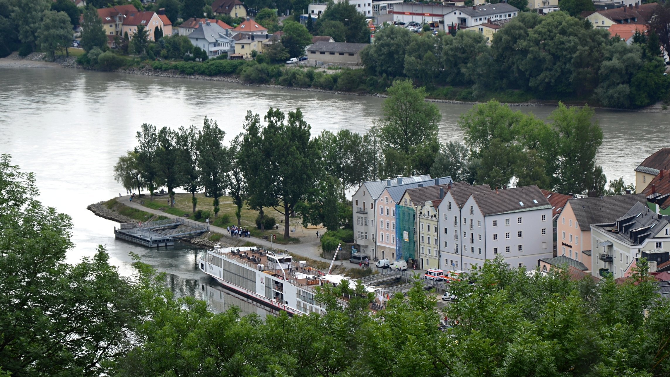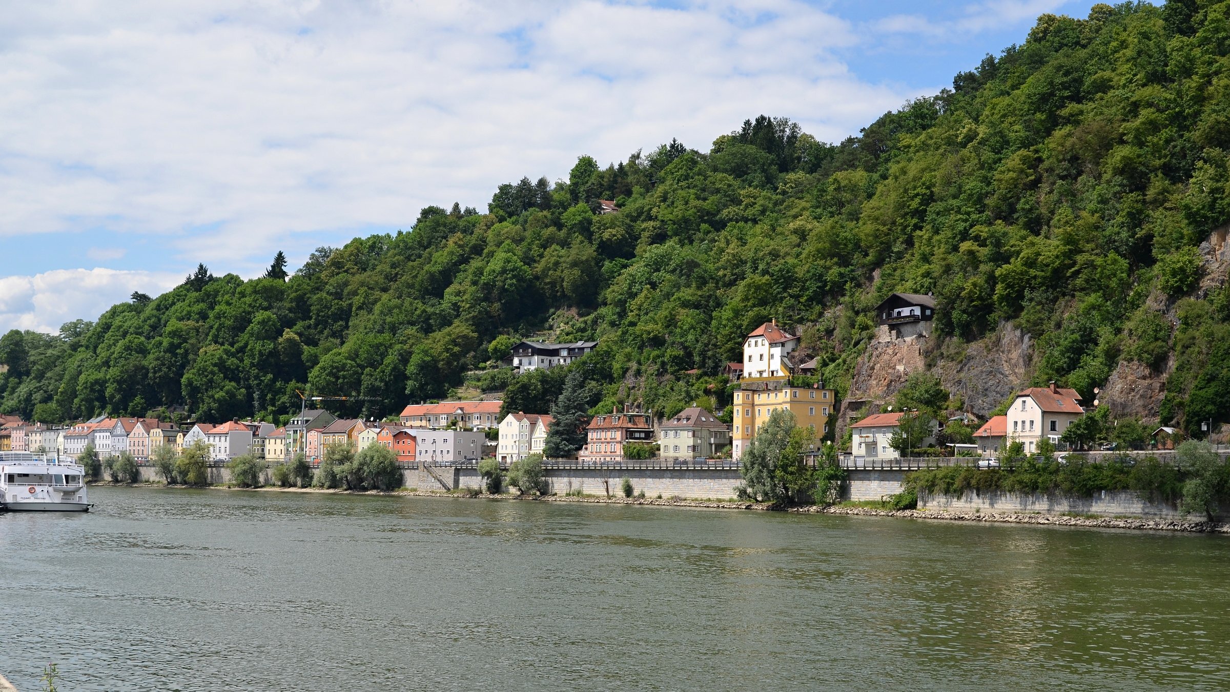 Если можно, я исправлю эту несправедливость? 😉 Тем более, что Пассау - в безумно далёком уже 2014 году - и мне в душу запал. Это был первый мой немецкий город вообще, и до сих пор остаётся, кажется, единственным городом западной Германии, мной когда-либо посещённым. Первая моя встреча с Германией, как сейчас помню, началась забавно. Едва выскочив из автобуса и прохаживась по парковке, дабы размяться, я буквально наткнулся на аборигена местного жителя, громко ругавшегося с парковочным автоматом (!) за то, что тот не хотел принимать пятиевровую купюру. Заметив мой недоумённый взгляд, немец обратился ко мне за помощью - разменять бумагу на монеты, которые по счастью у меня были. Не помню как, но общий язык мы нашли, хотя мои познания в немецком языке ограничивались в основном стандартным набором из кино про немцев 😁. Дабы не повторяться за Таней, покажу немного другие места. Мои любимые виды сверху книзу (нас на Оберхаус тогда всё-таки сводили). Городской мыс. Инн Слияние двух лун рек здесь бликует, но не беда. Позже я его всё-таки поймал в объектив. Монастырь Нидернбург с двумя похожими на пару карандашей башенками - кажется, тот самый что был описан ещё в легендарной Песне о Нибелунгах. Держала путь Кримхильда через баварский край На Пассау, где с Инном сливается Дунай И монастырь старинный стоит, поныне цел. Епископ Пильгрим, муж святой, тем городом владел. Когда о том, кто едет, известно стало там, Помчался князь-епископ навстречу пришлецам - Кримхильде приходился он дядею родным. Весь Пассау последовал немедленно за ним. Не зря рвались баварцы встречать гостей своих: Девицы королевы пленили взоры их. Свести знакомство с ними был каждый витязь рад. Сумел удобно разместить всех прибывших прелат. Дом, рядом с которым в возрасте четырёх лет едва не утонул Адольф Гитлер. Другой мальчишка его спас - и потом всю жизнь корил себя за это. Хотя стоило ли? При тогдашних общественных настроениях какая-нибудь экзальтированная до шизофрении личность, считающая себя всегда правой и готовая причинять и наносить чего-нибудь всем, кто не успел спрятаться, обязательно бы нашлась. Святой Стефан и перед нами предстал в лесах Но на органный концерт мы сходили. Записей увы не осталось - но зато вволю побаловался внутри купленным незадолго до тура объективом-фишаем ("рыбий глаз") 😁. А на десерт у нас была ещё и водная прогулка по Дунаю и Инну. На прекрасной Брунгильде Гизели под баварским флажком. Устье Ильца. И правда, выглядит черноватым. Примерно как многочисленные Чёрные речки что в уральских, что в припитерских лесах. Фото Ильца из автобуса и навскидку, не обессудьте за качество. Слияние Дуная и Инна. Разноцветье налицо. Прям хоть делай фото в стиле "одна нога здесь, другая там" 😁. Дунай. Инн. На башне - следы случившегося годом ранее (в 2013-м) большого наводнения в Пассау, когда "Баварская Венеция" на несколько дней стала "Баварской Атлантидой" - вода поднялась на несколько метров. Судя по линейке-футштоку на ратуше - это второе место за всю историю наблюдений... Чудесный город, куда действительно хочется вернуться.