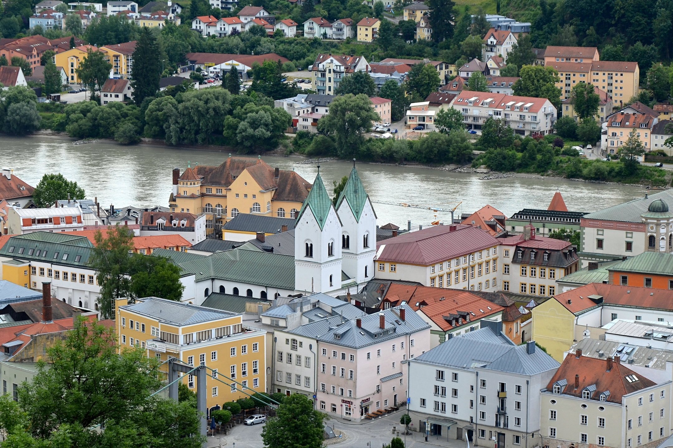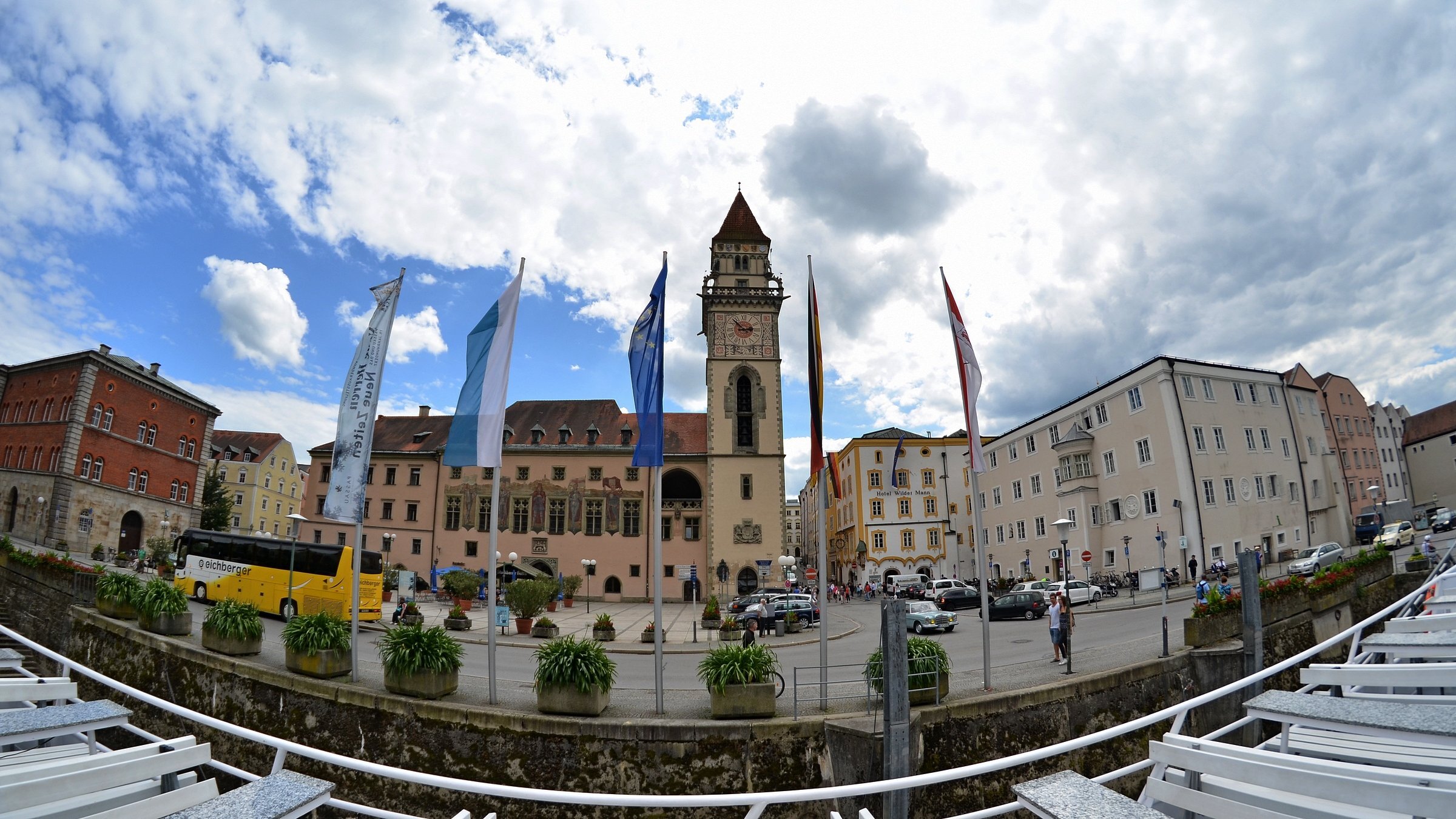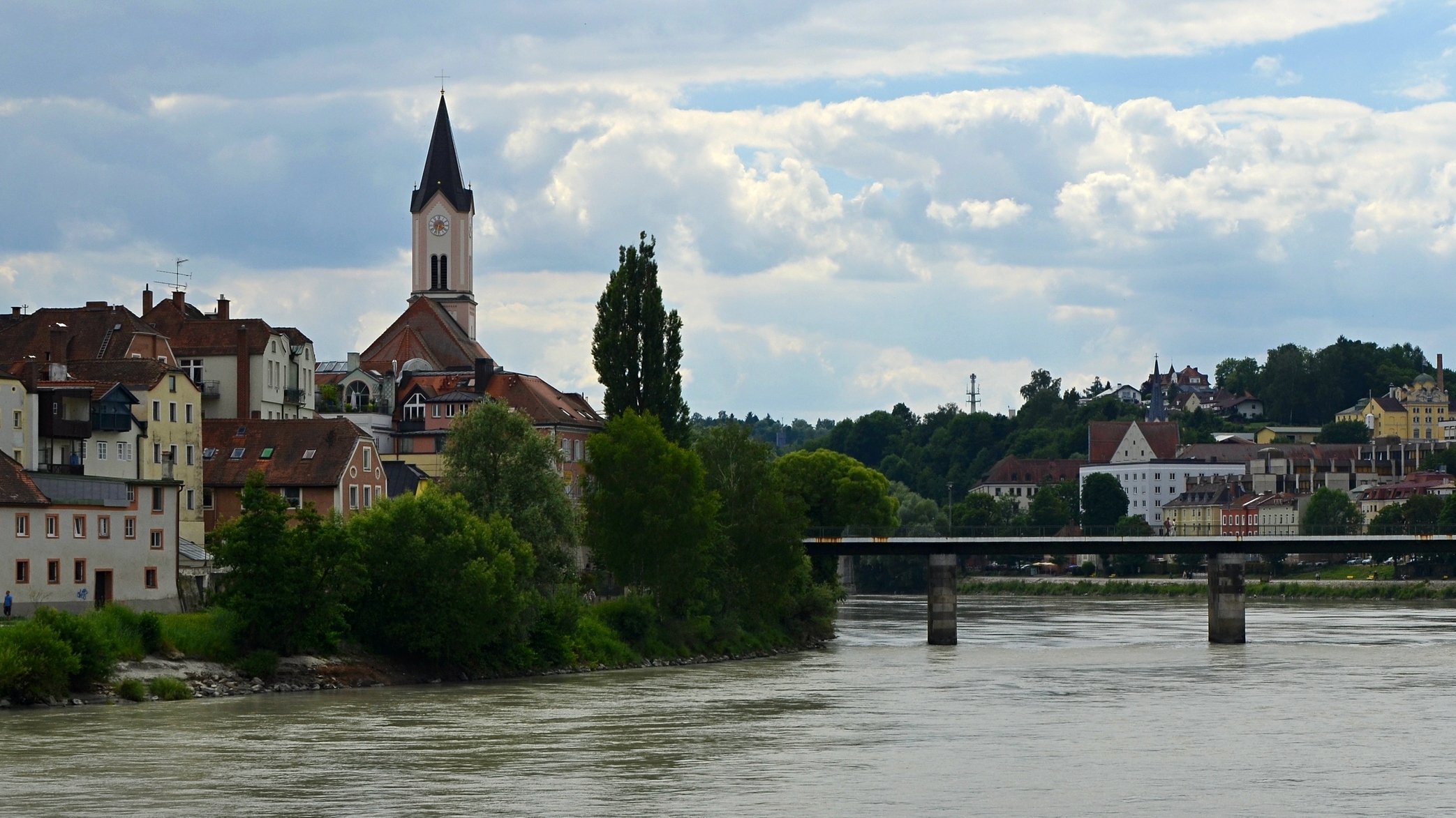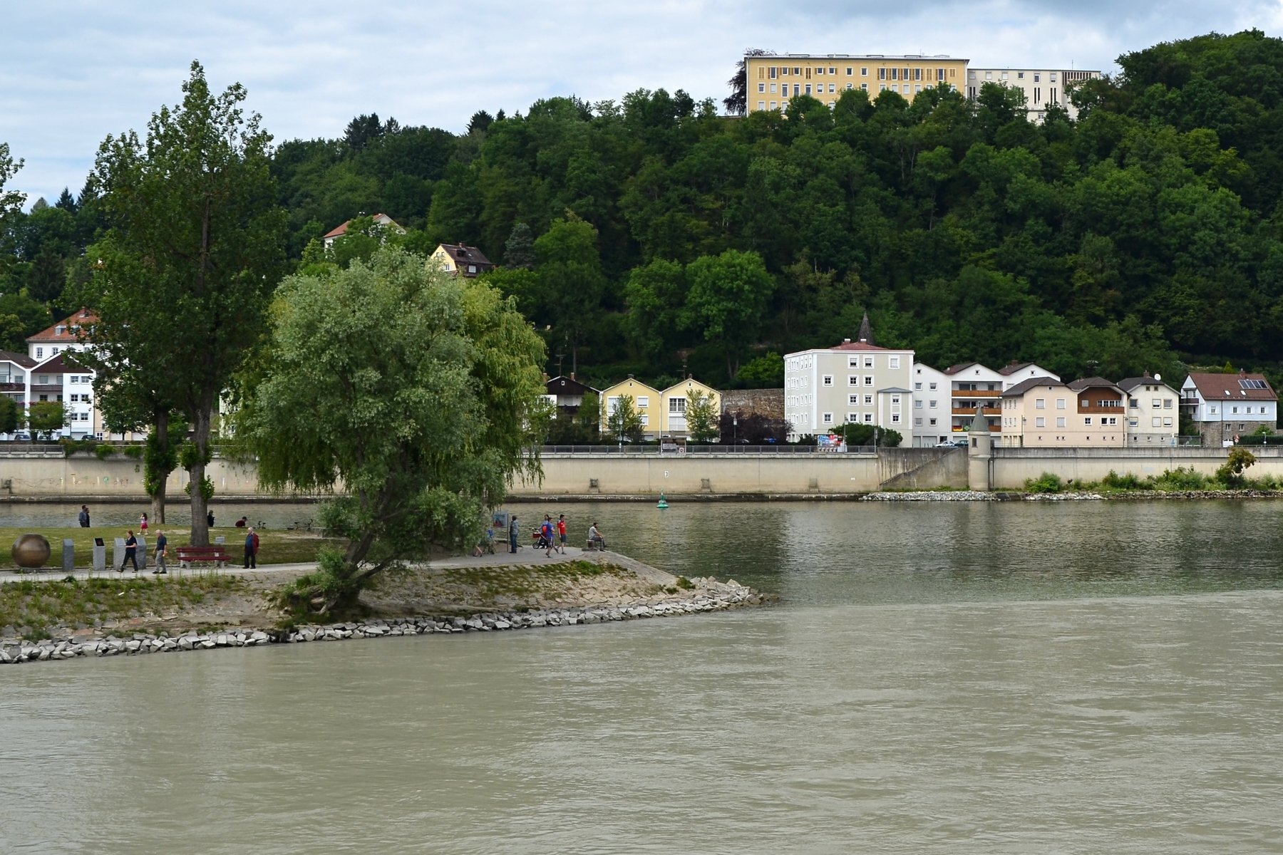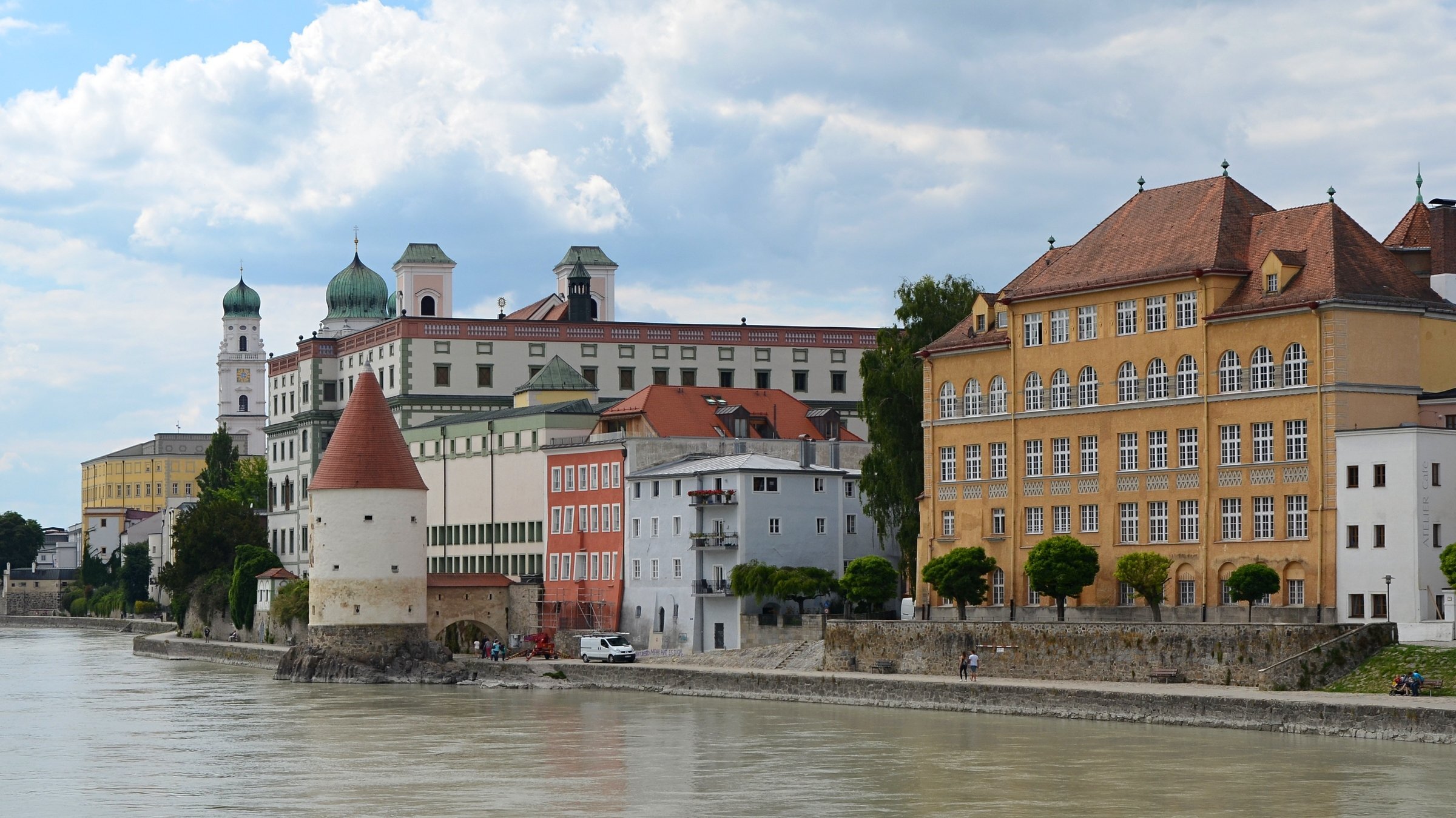 Если можно, я исправлю эту несправедливость? 😉 Тем более, что Пассау - в безумно далёком уже 2014 году - и мне в душу запал. Это был первый мой немецкий город вообще, и до сих пор остаётся, кажется, единственным городом западной Германии, мной когда-либо посещённым. Первая моя встреча с Германией, как сейчас помню, началась забавно. Едва выскочив из автобуса и прохаживась по парковке, дабы размяться, я буквально наткнулся на аборигена местного жителя, громко ругавшегося с парковочным автоматом (!) за то, что тот не хотел принимать пятиевровую купюру. Заметив мой недоумённый взгляд, немец обратился ко мне за помощью - разменять бумагу на монеты, которые по счастью у меня были. Не помню как, но общий язык мы нашли, хотя мои познания в немецком языке ограничивались в основном стандартным набором из кино про немцев 😁. Дабы не повторяться за Таней, покажу немного другие места. Мои любимые виды сверху книзу (нас на Оберхаус тогда всё-таки сводили). Городской мыс. Инн Слияние двух лун рек здесь бликует, но не беда. Позже я его всё-таки поймал в объектив. Монастырь Нидернбург с двумя похожими на пару карандашей башенками - кажется, тот самый что был описан ещё в легендарной Песне о Нибелунгах. Держала путь Кримхильда через баварский край На Пассау, где с Инном сливается Дунай И монастырь старинный стоит, поныне цел. Епископ Пильгрим, муж святой, тем городом владел. Когда о том, кто едет, известно стало там, Помчался князь-епископ навстречу пришлецам - Кримхильде приходился он дядею родным. Весь Пассау последовал немедленно за ним. Не зря рвались баварцы встречать гостей своих: Девицы королевы пленили взоры их. Свести знакомство с ними был каждый витязь рад. Сумел удобно разместить всех прибывших прелат. Дом, рядом с которым в возрасте четырёх лет едва не утонул Адольф Гитлер. Другой мальчишка его спас - и потом всю жизнь корил себя за это. Хотя стоило ли? При тогдашних общественных настроениях какая-нибудь экзальтированная до шизофрении личность, считающая себя всегда правой и готовая причинять и наносить чего-нибудь всем, кто не успел спрятаться, обязательно бы нашлась. Святой Стефан и перед нами предстал в лесах Но на органный концерт мы сходили. Записей увы не осталось - но зато вволю побаловался внутри купленным незадолго до тура объективом-фишаем ("рыбий глаз") 😁. А на десерт у нас была ещё и водная прогулка по Дунаю и Инну. На прекрасной Брунгильде Гизели под баварским флажком. Устье Ильца. И правда, выглядит черноватым. Примерно как многочисленные Чёрные речки что в уральских, что в припитерских лесах. Фото Ильца из автобуса и навскидку, не обессудьте за качество. Слияние Дуная и Инна. Разноцветье налицо. Прям хоть делай фото в стиле "одна нога здесь, другая там" 😁. Дунай. Инн. На башне - следы случившегося годом ранее (в 2013-м) большого наводнения в Пассау, когда "Баварская Венеция" на несколько дней стала "Баварской Атлантидой" - вода поднялась на несколько метров. Судя по линейке-футштоку на ратуше - это второе место за всю историю наблюдений... Чудесный город, куда действительно хочется вернуться.