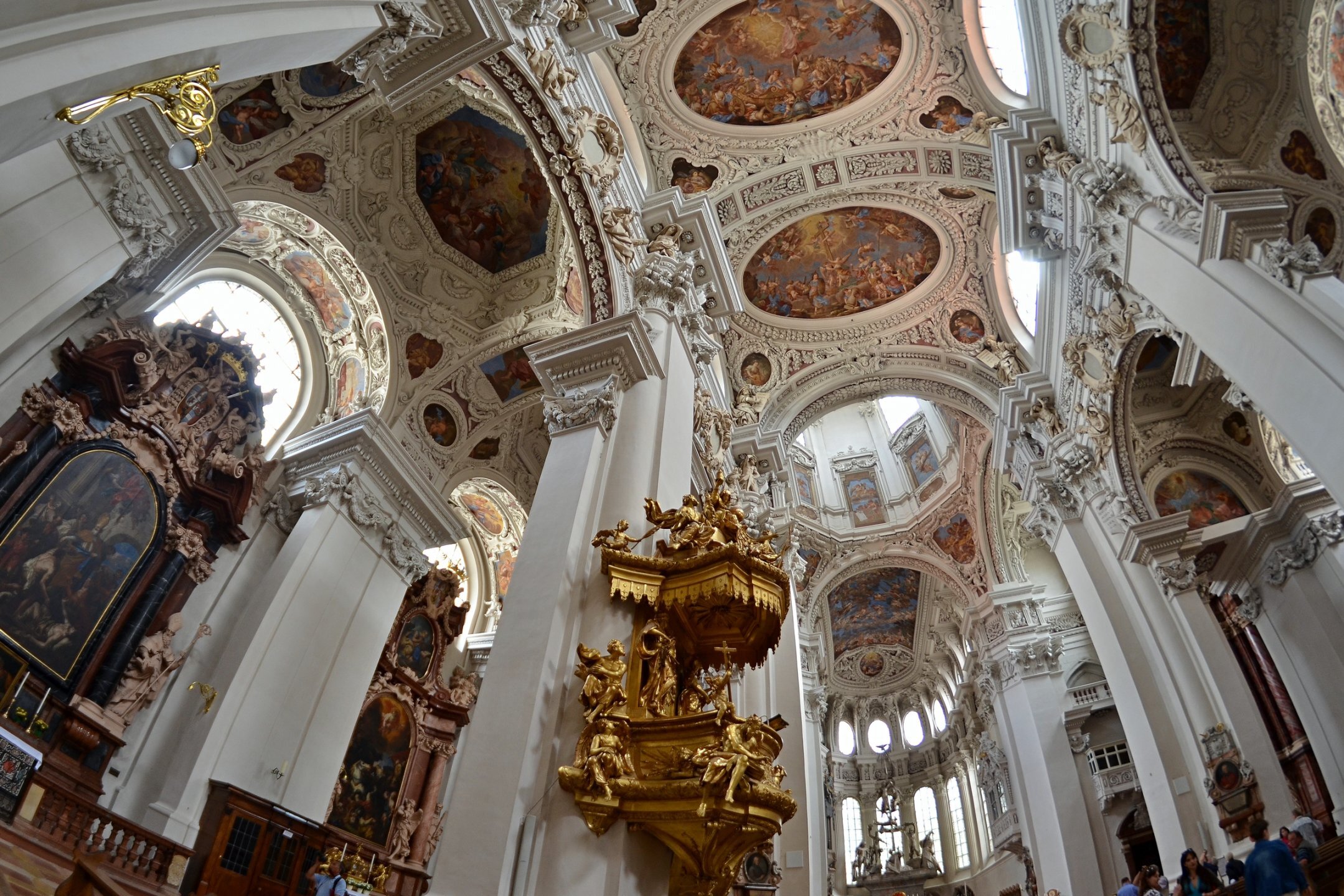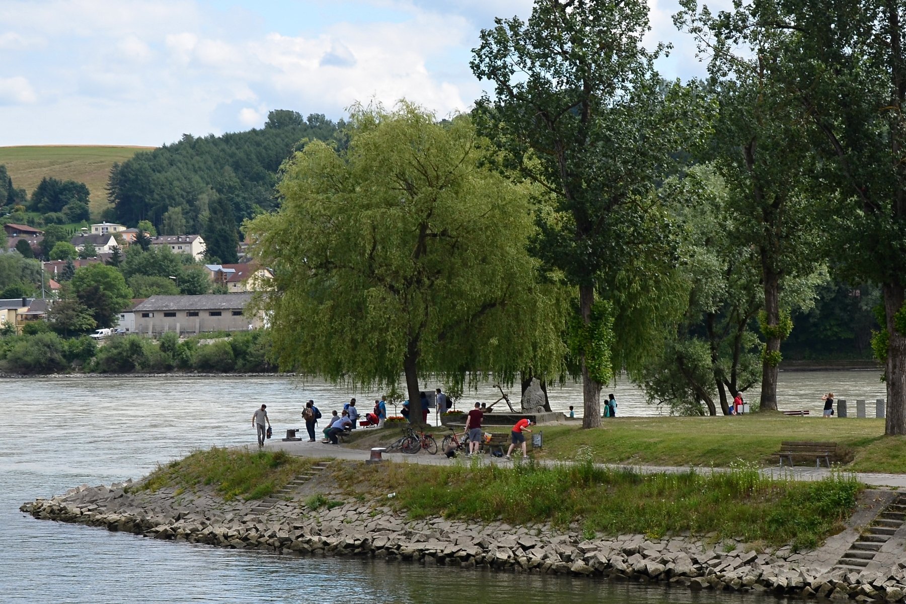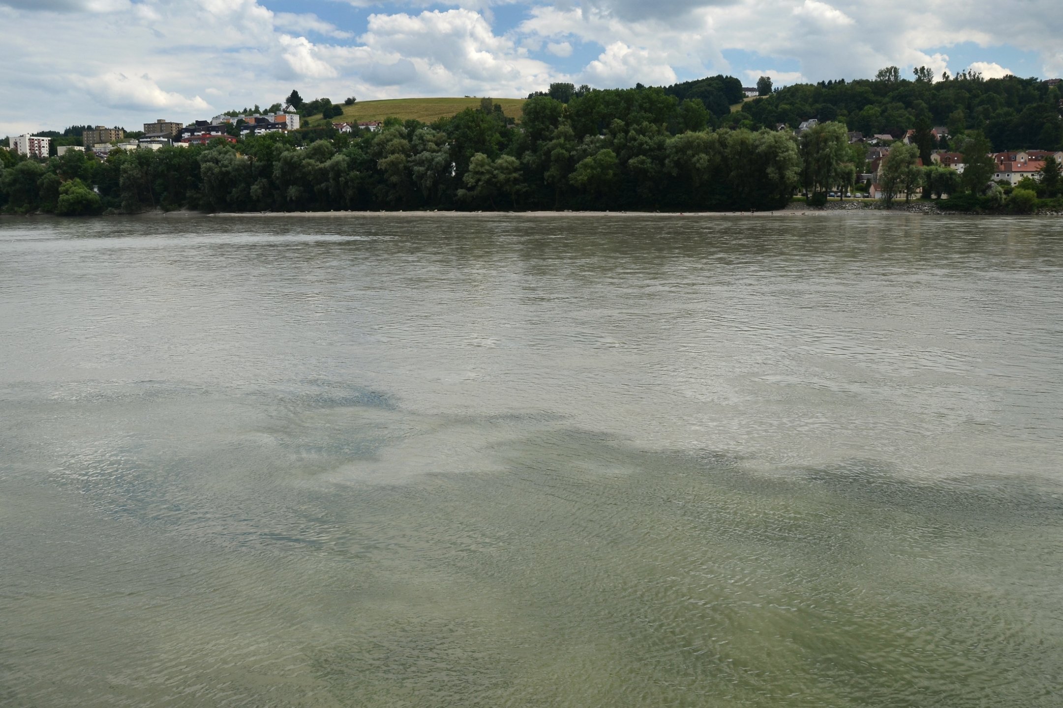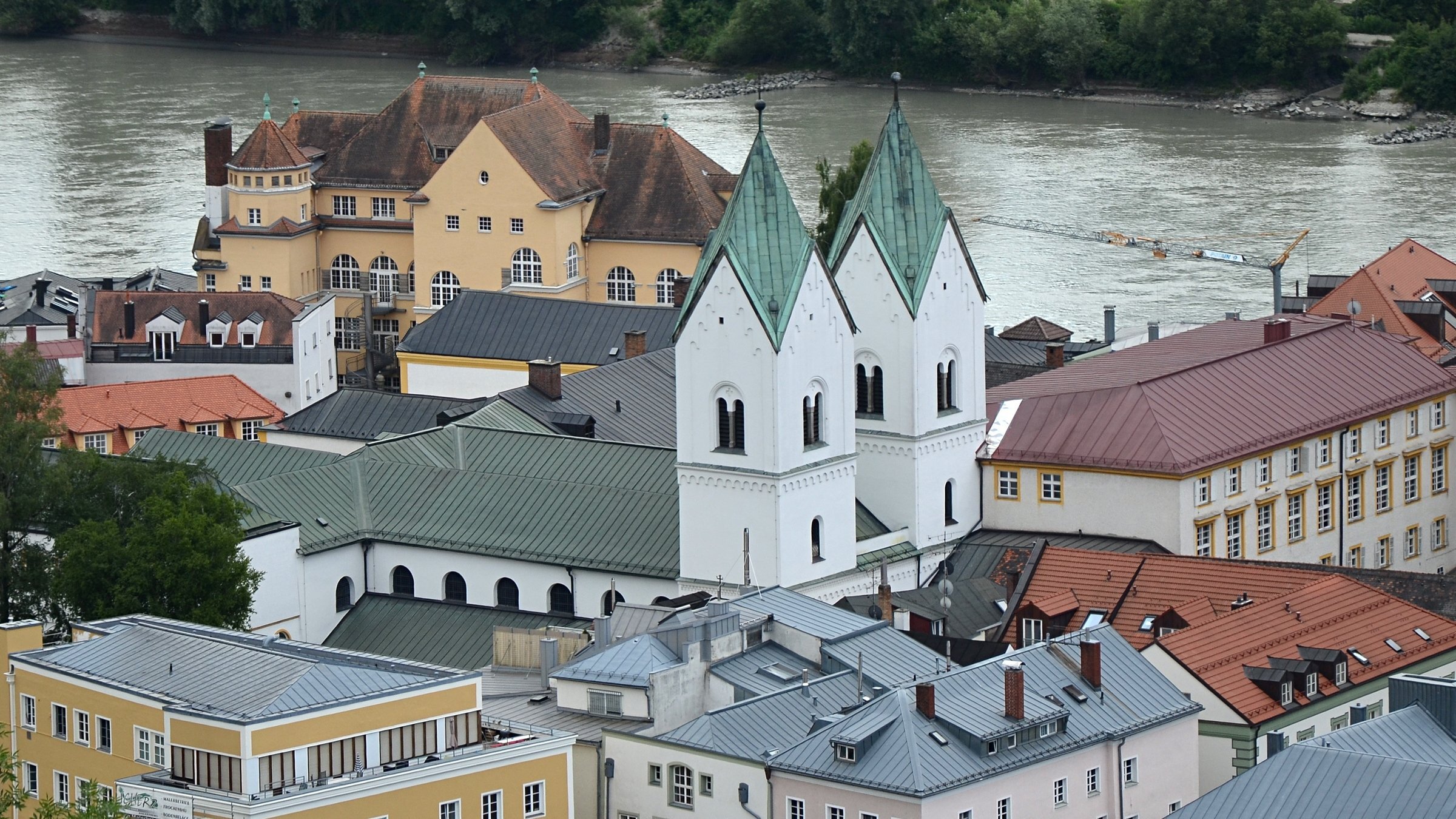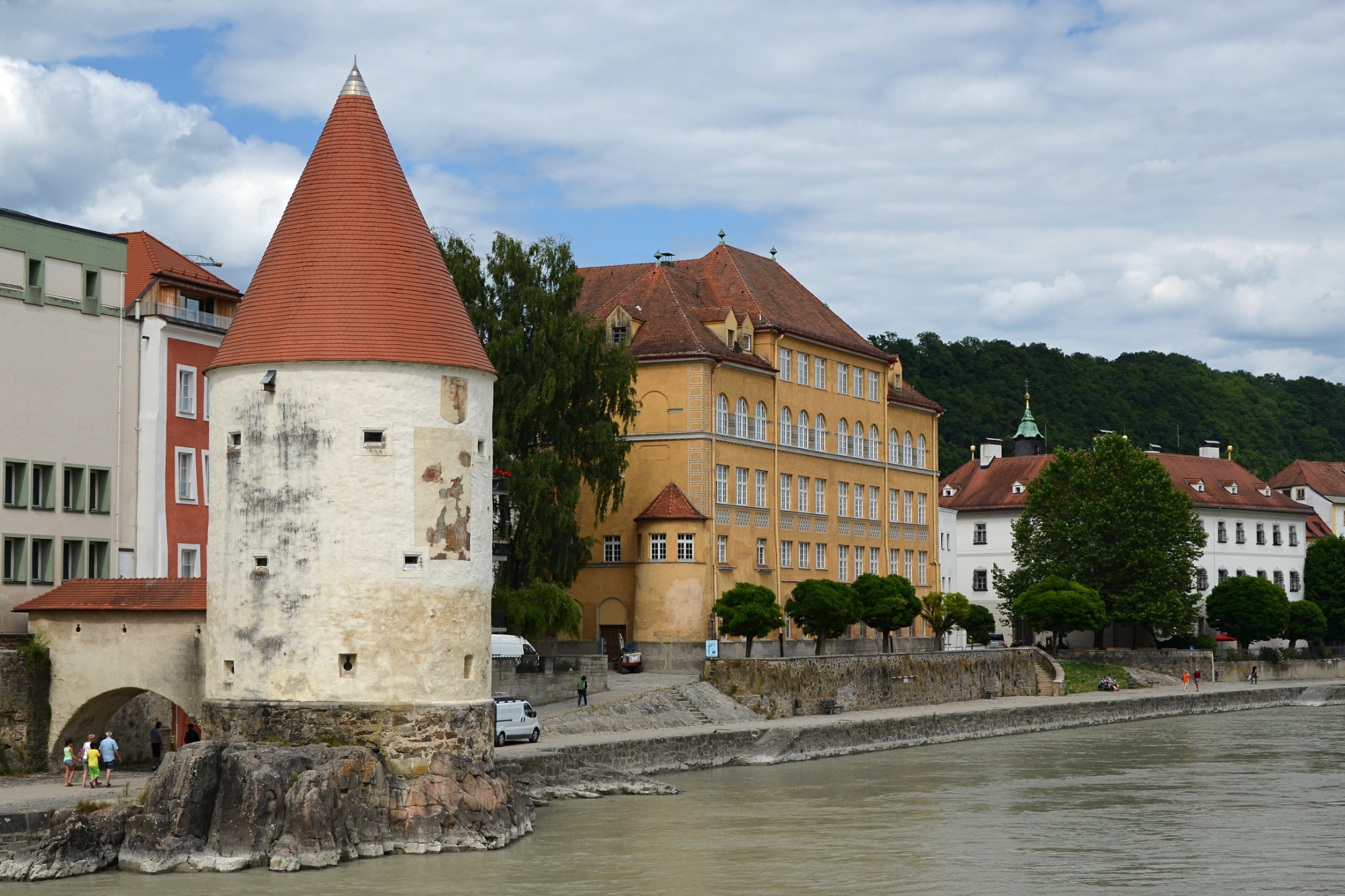 Если можно, я исправлю эту несправедливость? 😉 Тем более, что Пассау - в безумно далёком уже 2014 году - и мне в душу запал. Это был первый мой немецкий город вообще, и до сих пор остаётся, кажется, единственным городом западной Германии, мной когда-либо посещённым. Первая моя встреча с Германией, как сейчас помню, началась забавно. Едва выскочив из автобуса и прохаживась по парковке, дабы размяться, я буквально наткнулся на аборигена местного жителя, громко ругавшегося с парковочным автоматом (!) за то, что тот не хотел принимать пятиевровую купюру. Заметив мой недоумённый взгляд, немец обратился ко мне за помощью - разменять бумагу на монеты, которые по счастью у меня были. Не помню как, но общий язык мы нашли, хотя мои познания в немецком языке ограничивались в основном стандартным набором из кино про немцев 😁. Дабы не повторяться за Таней, покажу немного другие места. Мои любимые виды сверху книзу (нас на Оберхаус тогда всё-таки сводили). Городской мыс. Инн Слияние двух лун рек здесь бликует, но не беда. Позже я его всё-таки поймал в объектив. Монастырь Нидернбург с двумя похожими на пару карандашей башенками - кажется, тот самый что был описан ещё в легендарной Песне о Нибелунгах. Держала путь Кримхильда через баварский край На Пассау, где с Инном сливается Дунай И монастырь старинный стоит, поныне цел. Епископ Пильгрим, муж святой, тем городом владел. Когда о том, кто едет, известно стало там, Помчался князь-епископ навстречу пришлецам - Кримхильде приходился он дядею родным. Весь Пассау последовал немедленно за ним. Не зря рвались баварцы встречать гостей своих: Девицы королевы пленили взоры их. Свести знакомство с ними был каждый витязь рад. Сумел удобно разместить всех прибывших прелат. Дом, рядом с которым в возрасте четырёх лет едва не утонул Адольф Гитлер. Другой мальчишка его спас - и потом всю жизнь корил себя за это. Хотя стоило ли? При тогдашних общественных настроениях какая-нибудь экзальтированная до шизофрении личность, считающая себя всегда правой и готовая причинять и наносить чего-нибудь всем, кто не успел спрятаться, обязательно бы нашлась. Святой Стефан и перед нами предстал в лесах Но на органный концерт мы сходили. Записей увы не осталось - но зато вволю побаловался внутри купленным незадолго до тура объективом-фишаем ("рыбий глаз") 😁. А на десерт у нас была ещё и водная прогулка по Дунаю и Инну. На прекрасной Брунгильде Гизели под баварским флажком. Устье Ильца. И правда, выглядит черноватым. Примерно как многочисленные Чёрные речки что в уральских, что в припитерских лесах. Фото Ильца из автобуса и навскидку, не обессудьте за качество. Слияние Дуная и Инна. Разноцветье налицо. Прям хоть делай фото в стиле "одна нога здесь, другая там" 😁. Дунай. Инн. На башне - следы случившегося годом ранее (в 2013-м) большого наводнения в Пассау, когда "Баварская Венеция" на несколько дней стала "Баварской Атлантидой" - вода поднялась на несколько метров. Судя по линейке-футштоку на ратуше - это второе место за всю историю наблюдений... Чудесный город, куда действительно хочется вернуться.