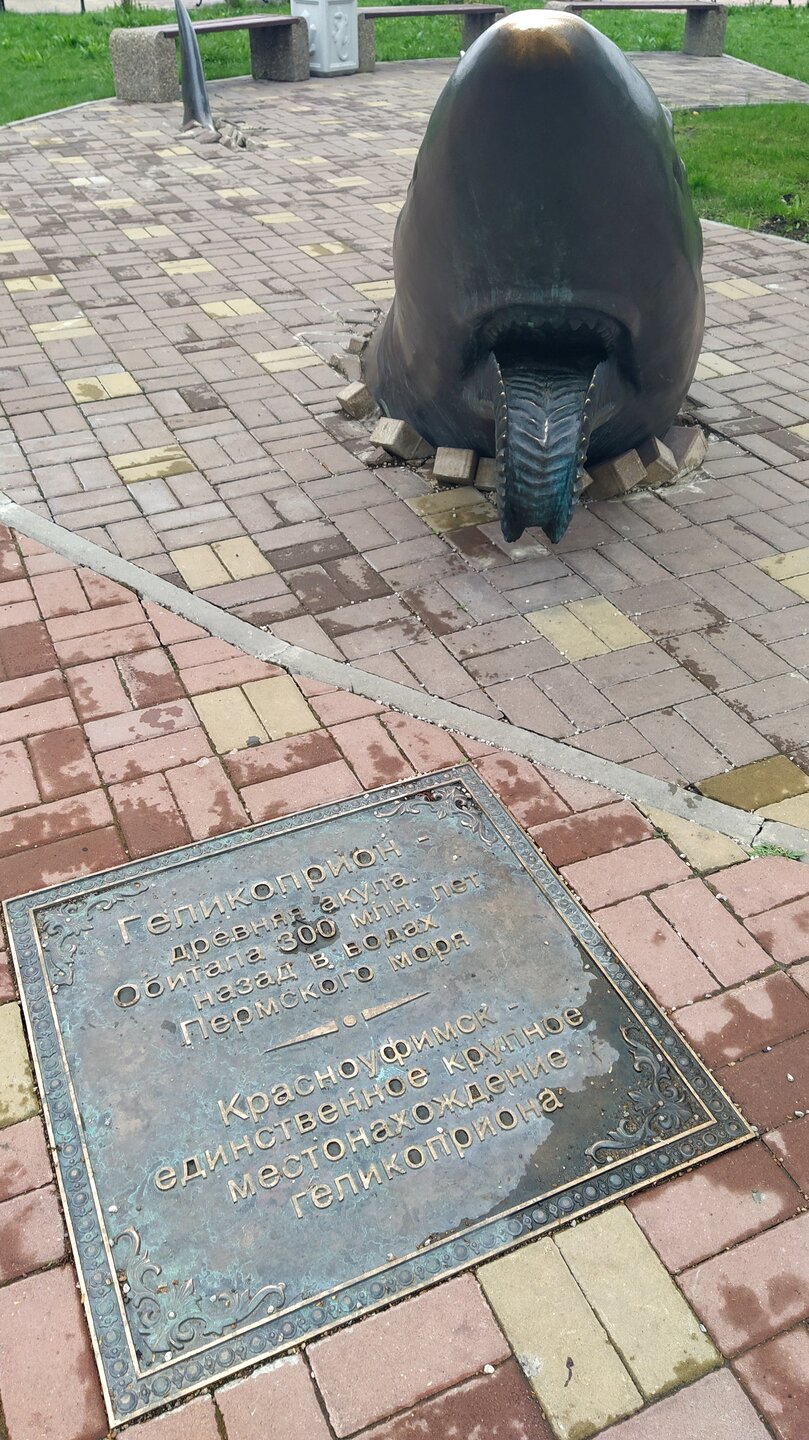 Согласен. А раз так, отнесусь к ней особенно бережно 😇. К - КРАСНОУФИМСК Самый западный город Свердловской области. После того, как поездишь по Уралу, кажется, что Красноуфимск собрал понемногу от всех уральских городов. Так же станция на "Казанбургской" дороге, как Ревда - правда с интереснейшим внешне вокзалом работы самого Щусева - который потом строил на московской Красной площади Мавзолей. (Да ещё и по совместительству самая восточная станция Ижевского отделения этой дороги 😁). Так же революционно звучащее, но не имеющее никакого отношения к большевикам имя. Так же основан как крепость на рубежах с башкирскими землями, как Челябинск. И даже тем же человеком - полковником А.И. Тевкелевым. Так же шумели здесь ярмарки, как в Ирбите... И так же любят самовары, как в Кунгуре или Суксуне... ... А древнюю фауну - как Очёр... Эта ископаемая акула геликоприон, жившая примерно в одно время с очёрским ивантозавром - отличная иллюстрация к поговорке "закатай губу" 😁. Но при всём при том Красноуфимск не кажется вторичным и скучным. Есть в нём своя изюминка. И в интересных арт-объектах... И в его храмах и мечетях (куда ж без последних на реке Уфе). И куда же на Урале без гор и скал. А ещё в Красноуфимске есть уникальный для России музей земской медицины - правда, попасть в него не всегда получится с первого раза. А неподалёку от города - живописные мосты-виадуки и туннели. Правда, запечатлеть их на ходу поезда нужна ещё большая удача, чем с музеем. Лучше взять экскурсию. Спасибо! Да, в одной Свердловской области чтобы всё как следует осмотреть месяц понадобится. А есть ещё Челябинская. И Курганская. И Пермский край. И... Урал - это целая туристическая Вселенная. В конце концов, не про всякий регион снимают такие мини-сериалы, как "Хребет России" 😇. Подождите, вот доберёмся до буквы В. Или С. Или Ч. Там тоже много интересного у нас 😉.