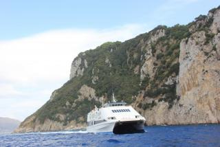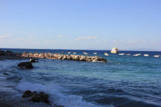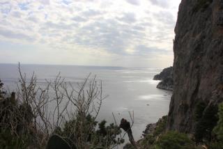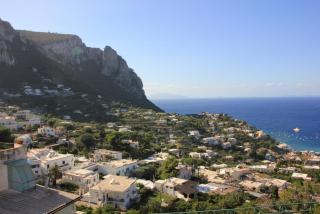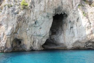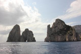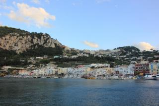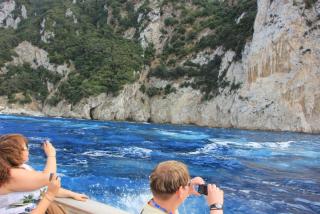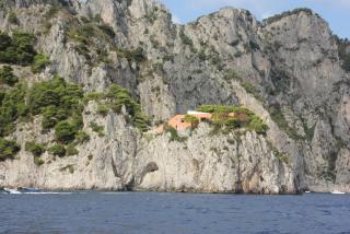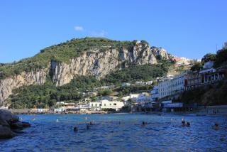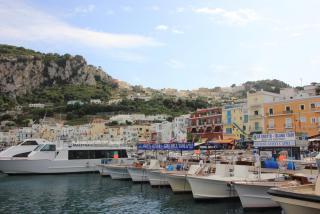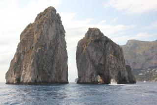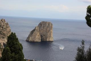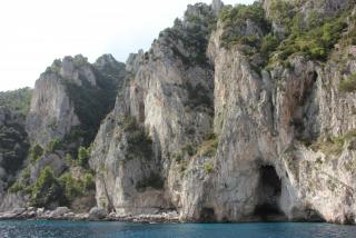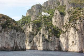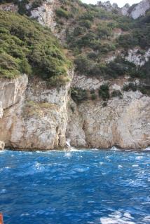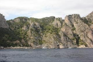Любой остров надо смотреть с воды и мы отправляемся в маленькое морское путешествие вдоль берега. Протяжённость береговой линии 17 километров, но она полна бухточками, пещерами, обрамлёнными нависающими скалами. В "голубом гроте", где раньше мог плескаться лишь император Тиберий, большая очередь из кораблей и мы туда, к сожалению, не попадаем. На нашем пути Белый грот, скала Arco Naturale, скалы Фаральони, за которыми просматривается второй порт острова Марина Пиккола с единственным на острове песчаным пляжем.