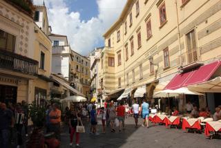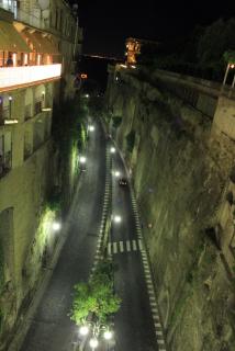 Ночная жизнь курортного города бурлила.Мы же спешили на автобус до гостиницы в пригороде Неаполя и нам оставалось лишь порадоваться за отдыхающих и присмотреться к сувенирам. Прослушав уже в салоне автобуса известную итальянскую песню "Вернись в Сорренто", мысленно ответили, что, конечно, вернёмся...завтра, проездом. Сорренто - первый город Амальфитанского побережья.