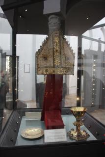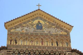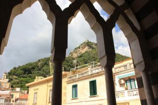 Райский дворик, обрамлённый 120 изящными колоннами, - кладбище богатых горожан. На стенах типичная для средневековья мозаика стиля "косматеско" с характерной штучной мозаикой. Базилика Распятия, основанная в 6 веке, ранее была кафедральным собором. Обращённая в музей, она напоминает о могуществе Амальфитанской епархии.Наиболее ценные экспонаты небольшой выставки - Анжуйская митра и потир 13 века, выполненные из золота и драгоценных камней.На митре 20000 жемчужин.