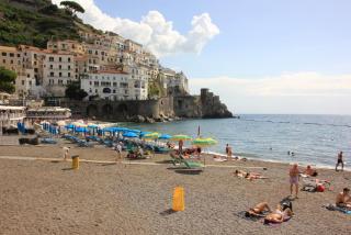У коммерции свои законы и в 13 веке пизанцы разбили весь флот амальфитанцев, а город разграбили.Население города до сих пор в десять раз меньше, чем во времена расцвета. Тем не менее, город сейчас один из самых посещаемых туристами на побережье. Жители успешно рыбачат и Св.Андрей, бывший рыбак и покровитель рыбаков, в этом помогает. Попробывать свежайшую рыбу и морепродукты вы можете в многочисленных кафе и ресторанчиках.