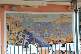 Поднявшись в город, оказываемся в городском парке, к которому примыкает внутренний монастырский дворик церкви Св.Франциска, где проходят фестивали "Соррентийское музыкальное лето". К хорошим песням и музыке здесь привыкли давно. Даже название города произошло от сладкоголосых сирен - птичек с головой девушки.На площади Тассо, центральной площади города, стоит статуя его небесного покровителя Святого Антониана - игумена с дельфином. Рядом возвышается здание Седиле Доминова, переданное "Рабочему обществу взаимопомощи", - местная достопримечательность с большими романскими арками.