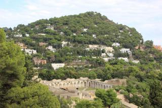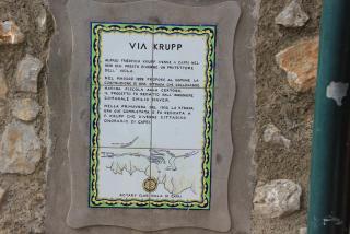 Конечная точка нашего городского путешествия - сады Круппа, переименованные в сады Августа. Фридрих Альфред Крупп - социально ориентированный крупный немецкий сталелитейный промышленник, считавший остров своей второй родиной, не только заложил сады, но и построил виллу, а от неё к гавани Марина Рiccola проложил со 100 метровой высоты самую извилистую улицу, длинной 1.5 километра, получившую его имя. Обвинённый в нетрадиционной ориентации, покончил и с "dolce vita" и с "vita"... На памятной доске написано, что он стал почётным гражданином города. Его сады и дорога отошли муниципалитету.