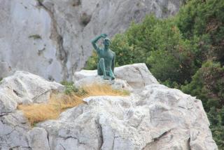 Итак,Капри. Есть мнение,как говорили в недавние времена, что именно на Капри, а не на Сицилии, жили на лицо ужасные и не очень добрые внутри циклопы. Жили сладкой жизнью (dolce vita), пасли овечек,увлекаясь сыроделием и радуясь яркому солнышку и необычайного цвета морю. Но как-то приглянулся остров герою с сотоварищами, незаконно проникли они в жилище одного из них - Полифена, сытно отобедали там, дождались хозяина, ослепили его и с захваченными трофеями - барашками - спешно ретировались.И звали героя Одиссей. Грусный миф, но сладкая жизнь на острове с тех пор притягивает многих... Остров Капри купил император Август, продав принадлежащий ему соседний, больший по размерам остров Искья. А уже его приёмный сын, Тиберий, развернулся не на шутку, благоустроив остров, построив на нём 12 вилл.Прожил Тиберий по тем, да и и по нынешним временам, долгую жизнь - 78 лет. Лучше один раз остров увидеть и мы прибываем в порт Марина Гранде.