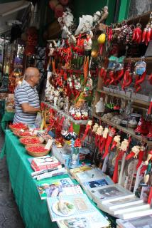 Неаполь - это и и огромный подземный город - катакомбы, образовавшиеся при добыче туфа, которые мы, к сожалению, не увидели. Неаполь - это и Каморра - неаполитанская организованная преступность, которую мы, к счастью, не увидели. Из Неаполя можно увезти с собой сувениры - фигурки, имеющие древнюю религиозную историю происхождения и делавшиеся раньше из терракоты - цветной глины. Мы же отправляемся на остров Капри - остров не миллионеров, а миллиардеров.