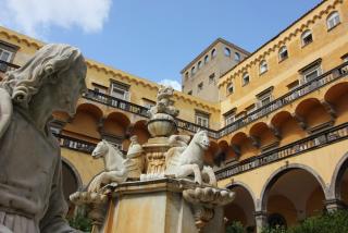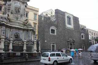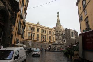 Смотря снизу вверх на замок Кастель Сант Эльмо, где в своё время прятался царевич Алексей, старший сын Петра I, мы продвигаемся к главной площади города - площади Плебесцита. Напротив церкви Св.Франциска с огромной колоннадой находится Королевский дворец со статуями лучших неаполитанских правителей. Рожер II, Карл I Анжуйский, Альфонс I Арагонский хмуро взирают на площадь, именованную в честь референдума 1946 года, покончившего с монархией.