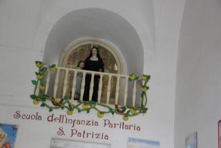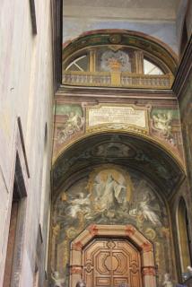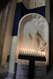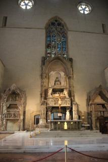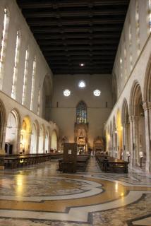 Следующий посещаемый нами храм - храм Санта Кьяры - последовательницы Франциска Ассизского, основателя ордена францисканцев. После американской бомбёжки 1943 года храм кропотливо восстанавливался. На стенах просматриваются отдельные элементы старых фресок, красивы витражи готических окон.