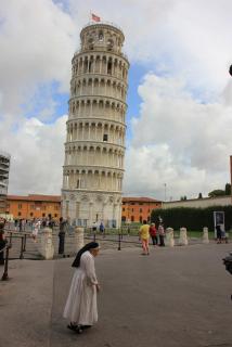 Безусловно самым значимым символом Пизы является Пизанская башня.Максимальное отклонение башни от вертикальной оси составляло 5,4 метров, угол наклона-более 5 градусов( обычно 5 градусов - это точка невозврата для башни, за которым следует её неминуемое падение).Её высота 56 метров.Начата строительством в 12 веке и закончена в веке 14.Крениться начала ещё при сооружени третьего яруса в связи с чем работы часто прерывались. Башня пострадала только один раз - из-за ошибки итальянских ПВО во время II мировой войны.... Подъём на башню ограничен и если вы соберётесь туда попасть, то лучше согласовать его заранее или приехать пораньше.