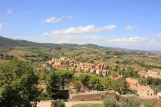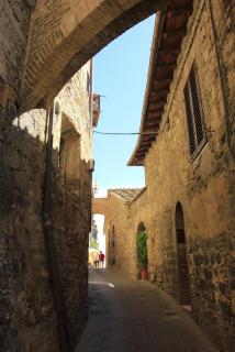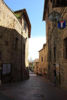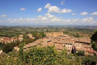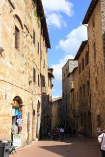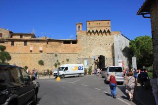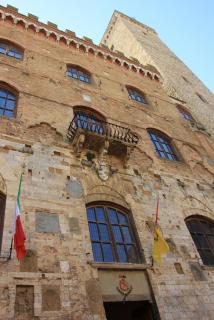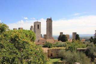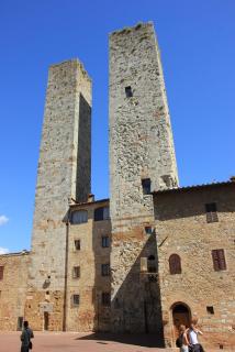 А наш путь лежит к следующей достопримечательности земли Тоскана - к небольшому городку Сан-Джиминьяно, раскинувшемуся на вершине 300-метрового холма. Это город средневековых небоскрёбов, который ещё называют "Город Башен". Башни стали строиться во время противостояния двух семейных кланов(11-13 века), возглавляющих партии сторонников Папы и Императора. Так, что принцип "мой дом - моя крепость" был воплощён задолго до озвучивания его в 17 веке английским юристом Коком. Считалось, что чем выше башня, тем знатнее род. Башни доходили до 70 метров пока глава администрации (подест) не ограничил их высоту высотой своей старой резиденции (51 метр). В одной из 14 сохранившихся башен (а всего их было 72) сделана 10-этажная гостинница. В башне подеста - музей.