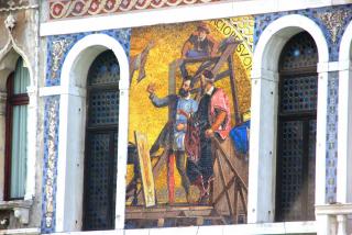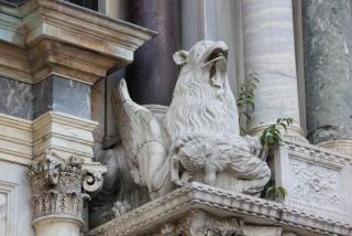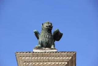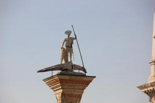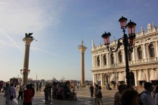 Складывается впечатление, что в Венецианской республике, а потом и в Римской империи, и в Италии с архитектурой было всегда и всё в порядке. Не случайно самые известные итальянские мастера строили дома, дворцы, города по всей Западной Европе и в дореволюционной России. Однако, это так только на первый взгляд. Это был тернистый путь ошибок, успехов и, в конечном счёте, получения ценнейшего опыта. Мы "подходим " к пристани и начинаем пешеходную экскурсию по Венеции... Первое, что попадается на глаза - это два высочайших столба, привезённых из Ассирии (третий утонувший не нашли до сих пор), на вершине которых находятся: крылатый лев - символ Венеции и прежний покровитель Венеции Святой Феодор с крокодилом. Феодора и крокодила, к примеру, собирали по частям - что к чему подойдёт. Так одно время было принято... Крылатый лев тоже натерпелся. Был вывезен Наполеоном, а когда французы его возвращали, то уронили и он рассыпался на несколько частей. Собрали, как могли. Между колонн местные жители не ходят – именно там проходили казни.