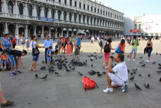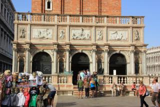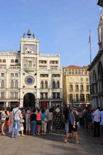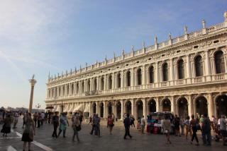 И,наконец,площадь Св.Марка - это культурный центр.Именно здесь находиться библиотека "Морчана" - Св. Марка.Это одно из главных книгохранилищ, где кроме миллиона книг находятся старинные навигационные карты и рукописи. Размещается она за 100 метровой колокольней Кампанилла, очередным символом Венеции, построенной в 10 веке, но из-за проблем с фундаментом рухнувшей и отстроенной заново уже в начале века 20 го... Ну и ,конечно же, не отвести взгляда от часовой башни со странным циферблатом, больше подходящим для планирования длительных морских путешествий, и двумя маврами на навершии, в любую погоду ежечасно бьющими в колокол...За что такая нелюбовь к маврам сказать трудно. Может быть за то, что в то время один их собрат задушил венецианку Дездемону?