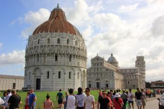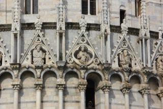 Но башня не единственная достопримечательность Пизы. В архитектурный ансамбль на Поле Чудес входят так же: Кафедральный собор, построенный в честь морской победы над сарацинами (арабскими пиратами) в Палермо, самый большой в мире Баптистерий Св.Джованни(крестильня) и монументальное кладбище Кампосанто -"Святое поле". Скульптуры и рельефы куполообразного баптистерия , изготовленные отцом и сыном Николло и Джованни Пизано, и скульптуры собора впечатляют ювелирной работой по камню.