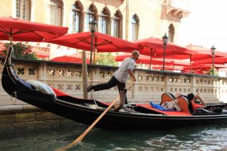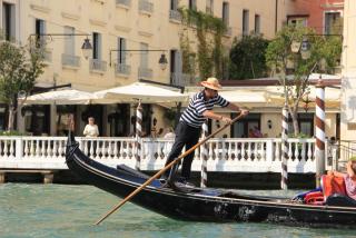 Венеция - это и гондолы -специальные лодки, делающиеся вручную из 9 сортов дерева и стоящие более 45 тысяч евро... Гондольером может быть только венецианец, прошедший 6-х месячное обучение и дождавшийся освободившегося места из 425 разрешённых ... Жаль, но баркароллу они уже не поют :(