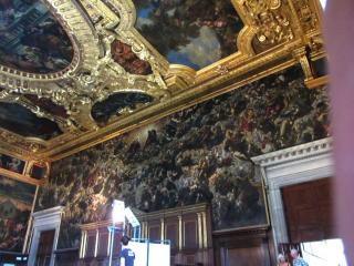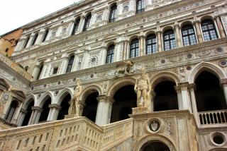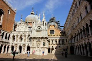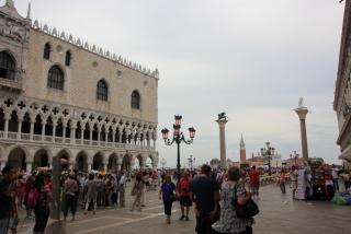 Это - центр политической власти, так как на площади находится дворец дожей (вождей в переводе с латыни). Дож- выборный глава Венецианской республики, избираемый из самых влиятельных и состоятельных граждан Венеции, обычно пожизненно.Его выборы проходили через 11 голосований и в конечном счёте он избирался из 4 претендентов.Вот такая вот демократия...Кстати, он не мог иметь собственности зарубежом и после смерти было предусмотрено возмещение ущерба, причинённого его правлением. Правление сочетало монархические, аристократические и демократические черты. Всего было 120 дожей, но некоторых из них за стремление к авторитарному управлению вымарывали не только из истории, но и со стен залов, где размещались их портреты...