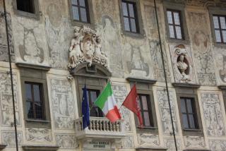 Время на посещение комплекса было ограничено и я предпочёл прогуляться по городу, чтобы почувствовать пульс городской жизни. Первым на пути встретился бывший дворец рыцарского ордена Святого Стефана,где проводилась трёхгодичная подготовка послушников, сопровождавших конвои по Средиземному морю.Ныне здесь Высшая Нормальная школа.Удивительна техника настенной живописи- сграфитто, сохранившаяся до наших дней.