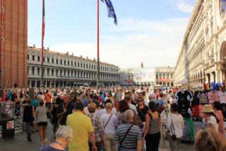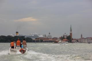Возвращаемся обратно в Венецию... Несколько грустных слов. За 20 век Венеция погрузилась на 12 сантиметров. Площадь Св.Марка около 40 дней в году находится под водой. Плачевно состояние многих домов и соборов.Население города постоянно сокращается...сейчас оно соствляет 250 тысяч человек. Ну и о хорошем: ежегодно в Венецию прибывает 55 тысяч туристов и многие из них на шикарных лайнерах...
