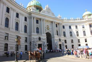 11. Через проходной двор выходим на площадь св.Михаила. Здесь, в здании дворца Хофбург, оборудован и зимний менеж, и конюшня для лошадей выводимой в Австрии породы липицанеров...