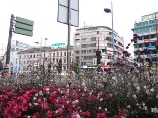 18. Вид на одну из центральных улиц города.К сожалению, быстро темнело, магазины закрывались, народ неспеша возращался домой...Было тепло и об осени можно было судить только по осенним витринам магазинов и "отлёту уток в тёплые края"...