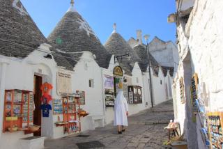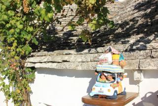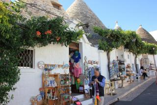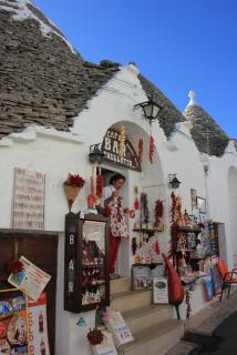 15. Домики трулли строились с 1635 года по 1925 год, когда их строительство было запрещено.Однако и сейчас под них строители трулларо строят гостинницы, ресторанчики, магазины. Под эти же цели переделывают свои дачные домики и владельцы настоящих трулли. Пожелав доброго дня хозяевам ("buon giorno") и расположив их на скидки :), пройдём по магазинчикам. Сувениры никого не оставят равнодушными.