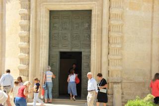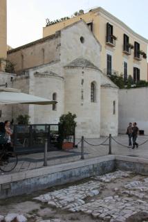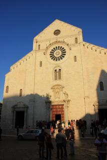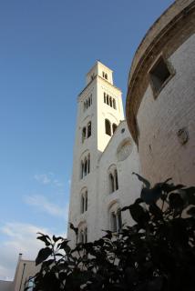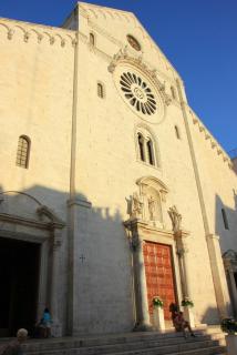 24. В 200 метрах нас ожидает следующая достопримечательность - Кафедральный собор Св.Сабина, выполненный в том же стиле, что и базилика Св.Николая, - апулийско-романском. Собор построен в 12-13 веках на месте храма Византийской империи, разрушенного всё тем же Вильгельмом I Злым. В крипте хранятся мощи самого епископа Сабина и непорочной девушки Коломбо(Голубки). И в этом соборе проходит венчание.