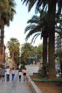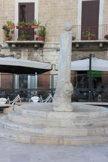 20. Извините, отвлеклись. Продолжим нашу экскурсию по городу. На одной из площадей обнаруживаем позорный столб для должников, Колонну Правосудия или Позора. К ней приковывали должников на три дня, после которых, если долг не был отдан, должник отправлялся в тюрьму. На центральной улице города можно увидеть памятник "Конь с чепраком"(чепрак - подстилка под седло). Это конь Фридриха II Гогенштауфена - талантливого и высокообразованного правителя. Наездника нет, но согласно легенде он вернётся , чтобы установить царство всеобщего мира и благоденствия. В городе много театров, в их числе самый старый - Театр Пиччинни, композитора, уроженца Бари.