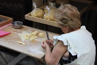 22. Домашнее производство пасты в городе, вероятно, имеет глубокие традиции. Ведь морякам, отправляющимся в далёкое плавание от последнего крупного порта, необходимы были долгохранящиеся без потери качеств продукты, которые можно было бы быстро приготовить. Сегодня порт города связан постоянным морским сообщением с Черноргорией, Албанией,Хорватией,Грецией, но паста, вернее 50-сантиметровая лапша, приехала в Италию всё-таки из Китая, где её начали производить при династии Шан до 11 века до н.э. Возможно, "переносчиками" рецепта оказались арабы, разрезавшие раскатанное тесто уже не из смеси пшеничной и рисовой муки, а из муки пшеницы твёрдых сортов и сушившие его нарезанные полоски на камнях . Кстати, при приготовлении и употреблении спагетти (от ит. spago - шпагат) , стандартная длина которых составляет 25 см, соблюдайте правила 4 "не": не ломать, не промывать после приготовления, не подогревать второй раз, не есть одной вилкой (помогают обычно ложкой).