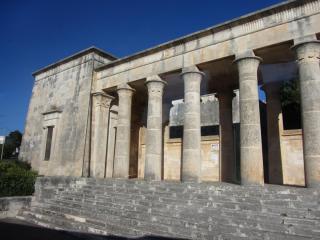 11. Уже при подходе к автобусу наше внимание привлекает портик этрусской архитектуры , которую использовали при строительстве позднейших римских храмов. Сооружение с гладкими колоннами и простыми тосканскими капителиями переносят нас в эпоху императора Тита Флавия Веспасиана, чьё решение на налогообложение 144 подобных римских городских сооружений позволило начать строительство Колизея. Высказанное им в связи с этим налогооблажением выражение "деньги не пахнут" прославило его на многие века. Желающие скажут спасибо Веспасиану :) и двинемся в путь дальше. (шучу - на фото платный туалет)