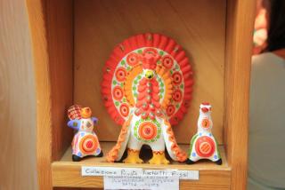 14. Очень интересно каким образом сюда попала кировская игрушка. Её особенности узнаются в некоторых произведениях последователей. Для кировчан, желающих разобраться с авторскими правами :) или заняться тем же в далёких трулли, а так же для самостоятельных туристов сообщу, что номер в гостинице стоит 50 - 90 евро в сутки, а домик трулло от 50 тысяч евро...