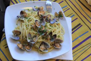 21. Как бы то ни было, Италия сегодня производит почти три миллиона тонн макаронных изделий в год более 600 форм. Разница форм в способе производства: прессование через бронзовые или тефлоновые матрицы, резание, штампование. Пасты делаются только из твёрдых сортов пшеницы, не содержат холестирина и ,практически, не имеют жира. Но лучше не вдаваться в теорию, лучше их попробовать.Например, с чернилами каракатицы или с мидиями. Кстати, паста (говорят так её назвали, чтобы ушло обидное название "макаронники") является первым обеденным блюдом, супы - вторым. Из закусок стоит попробовать салат с моцареллой - сыром из буйволиного молока (правда, буйволов я так нигде и не увидел) и дыню с ветчиной.