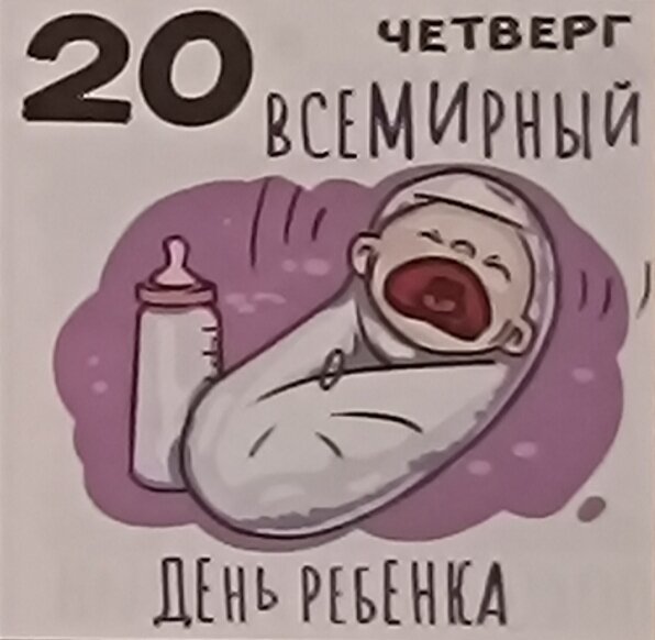 20 ноября. Всемирный день ребёнка - это праздник и самих детей, и всех, кто защищает их права, кто работает над тем, чтобы у ребёнка был доступ к образованию и медицинскому обслуживанию, кто защищает их безопасность. 20 ноября 1989-ого года была принята Конвенция о правах ребенка, которая обязывает страны обеспечить детям достойную жизнь. Одним из фундаментальных прав ребёнка является право на семью. Именно семья естественная среда обитания детей.