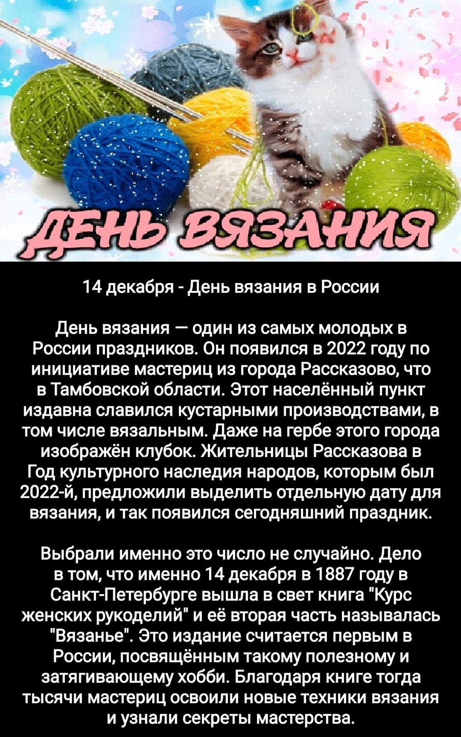 13. 13 декабря. Всемирный день хора. День вязания в России.