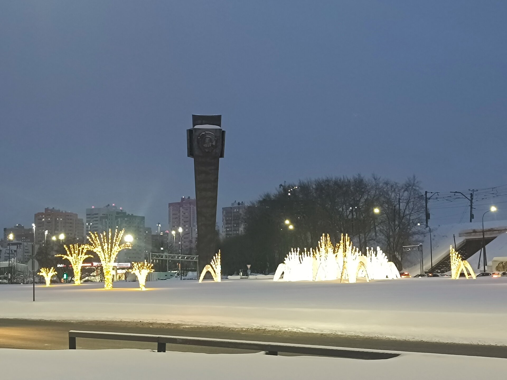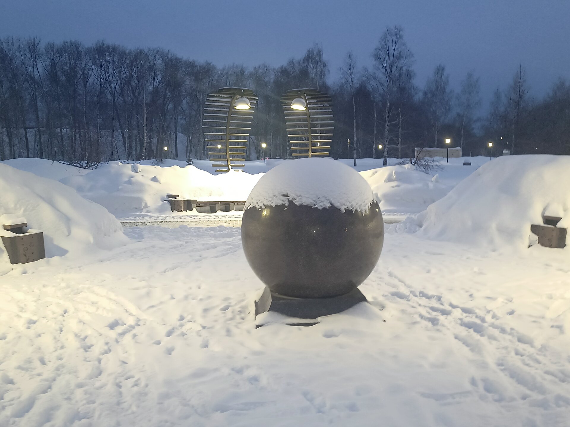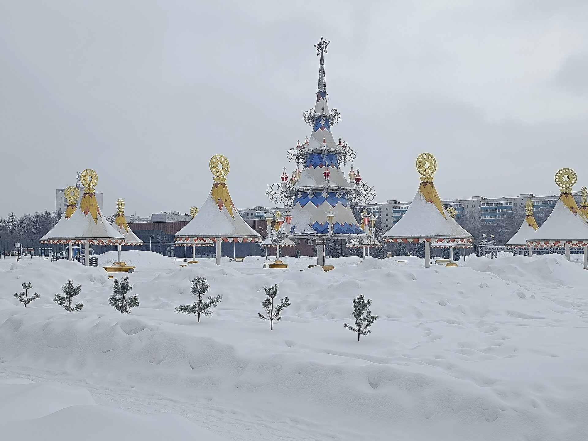 18. Кстати, эта "современная ёлочка" и шатры не разбираются никогда, стоят у нас круглый год со времён их установки. Здесь же проводятся различные праздничные мероприятия. На смену большим елям "придут" новые ёлочки, которые сажали в парке на субботниках инициативные группы. Ёлки быстро растут, при хорошем климате не засохнут. В парке интересно будет гулять и зимой, и летом.🚶