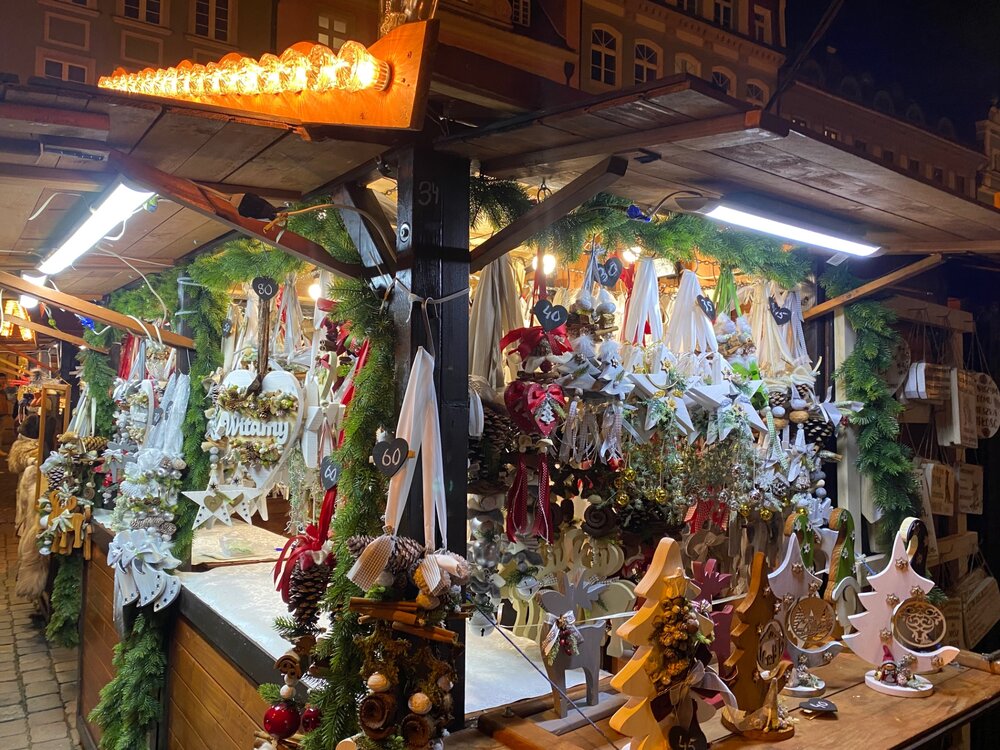 Ну вот и настала яркая красивая пора предрождественских ярмарок в Европе. Хочу показать вам небольшую часть из них. Как теперь там все выглядит. Как? Да все так же весело, ярко и празднично, как и в доковидные времена. Да да. В разгул пандемии некоторые страны отказались от проведения ярмарок, либо провели в очень урезанном формате. Ну как вот в маске глинтвейн то пить? 😄 В прошлом году, например в соседней Германии ярмарки открыли, но через 2 дня все свернули, закрыли и объявили локдаун. Ну а немцы сели на авто и помчались к соседям в Польшу. У нас ярмарка была полномасштабная и без ограничений. Поэтому на нашей Вроцлавской ярмарке в прошлом году часто можно было услышать немецкую речь. А так же на рынках и в супермаркетах. Хочу сказать что во Вроцлаве одна из самых красивых ярмарок в Европе, на мой взгляд. Плюсом еще то что она располагается на центральной площади, в окружении таких милых нам цветных домиков и ратуши. Мы отправились на ярмарку в прошлый выходной, на третий день ее открытия. На близлежащих паркингах место для авто можно было найти с трудом. На самой ярмарке не протолкнуться. Ну начнём. Сказочный лес Ратуша А это наша елка. Многие местные ее который год ругают, такая она нелепая. Пока еще она не горит всеми огнями, огни на елке принято торжественно зажигать на Миколайки, день Святого Миколая, 6 декабря. В этот же день дети ждут подарков от Миколая, ведь является родным братом нашего Деда Мороза. Ярмарка из года в год напоминает предыдущую, но все же добавляют что то новое. Например в этом году поставили новый домик. И даже те кто давно живут и говорят - да что мы там не видели, каждый год одно и то же. все равно идут, посмотреть на новенькое. Ну и конечно товары праздничного потребления и употребления. Кружки! Во Вроцлаве уже несколько лет есть традиционная форма кружки - сапожок. По годам они отличаются только цветом, рисунком и обозначением года. В этом году кружки такие Среди понаехавших несколько лет назад, есть традиция подсчитывать свой эмигрантский стаж количеством кружек. У некоторых собирается немаленькая коллекция. Например у моей приятельницы такая. А на местном сайте «купи- продай» сапожки прошлых лет продают с 10-20 кратной наценкой. Вот такая традиция.