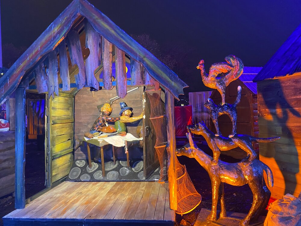 И вот мы выходим на улицу. Ну совсем другое дело. Вот она! Атмосфера Адвента и как то уже более привлекательная. В общем что тут рассказывать. Лучше смотреть. Посмотрите какой оригинальный вертеп сделали. Ну вот и заключительная кружечка глинтвейна! Ну это мы так думали😂