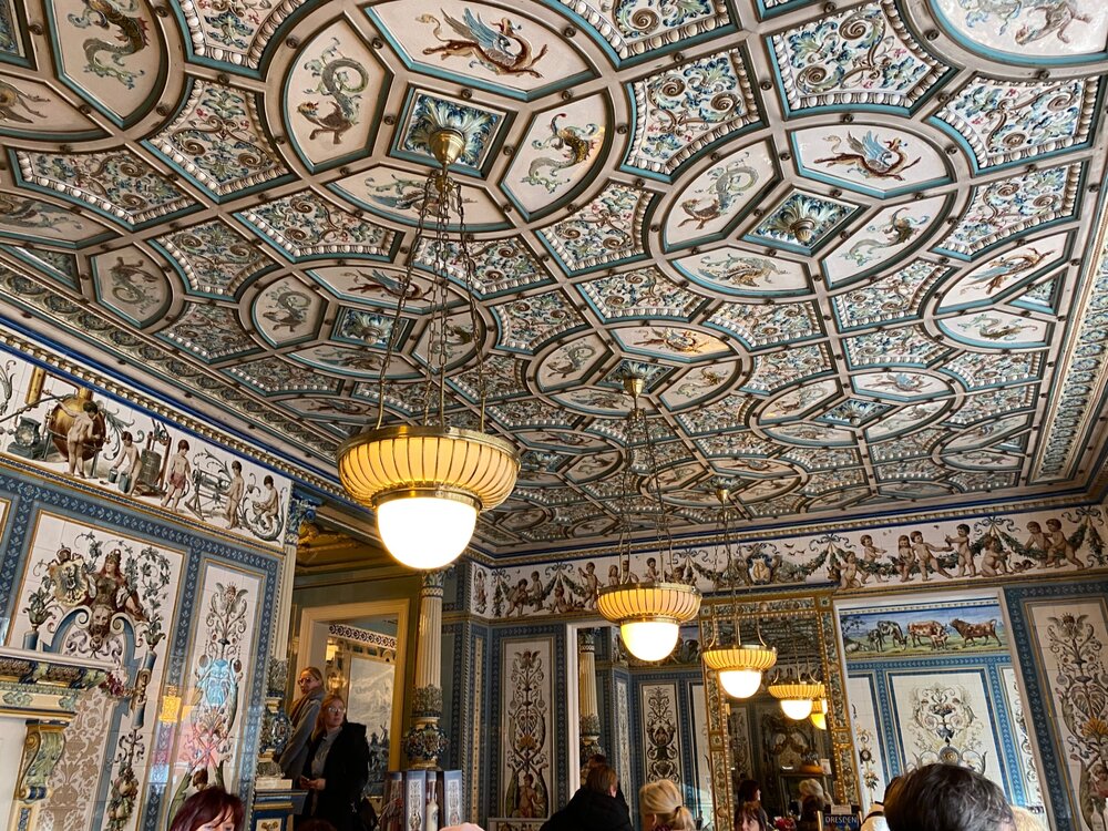 Выходим на одну станцию раньше чем центральный вокзал Дрездена. Есть одно место которое я б хотела посетить, но в предыдущие визиты мне все никак не удавалось туда попасть. Находится оно не в центре, но в пешей доступности (30 мин) на другом берегу реки. Идем Это знаменитый молочный магазин, который работает на этом месте с 1891 года. Был закрыт в 1978 году и снова восстановлен уже в 90-х годах, интерьеры выложены плиткой 1892 года. В этом виде он работает и сейчас. Являясь больше туристическим местом.