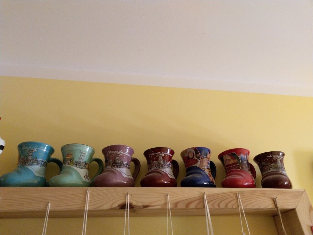До автобуса нам еще полтора часа, до вокзала от площади Альктмаркт идти 25 минут по прямой. Но мы решили уже идти, заранее, помятуя о своем опоздании на поезд😄 2 приключения на один день это перебор, все таки годы то уж не те😂 Идем не спеша до вокзала, эта прямая улица тоже вся уставлена ярмарочными домиками и украшена. И тут опа! Другие кружки!!!!! И что? Надо брать!!! Идем дальше. Ооооо! А тут с медвежонком! Берём!! Изначально мы не планировали что то вообще покупать, сувениры, какие то товары, да и кружечек то 2 хотели. Одну из Берлина, одну из Дрездена. В итоге гремели стеклотарой как склад винзавода 😄 Сейчас построила свою добычу, вот что получилось синюю кружку 19 года обменяла на желтую, а то что то одна синева у меня получается. А темно синих кругленьких кружек у меня 2, просто нам было лень идти обратно сдавать кружку😄 А это моя предыдущая часть коллекции Черную муж привёз в 2015 вроде из Мюнхена, вишневого цвета тоже из Мюнхена привезла я в 2018, белая из Нюрнберга. Красный сапожок с белым носом из Вены, остальные сапожки из Вроцлава. Вот так вот незаметно для себя я стала коллекционером кружек. 😄 А еще, тоже как то незаметно у меня появилось хобби открыток из разных стран. Где бываю я и мои друзья, мы отправляем друг другу открытки и я сама себе конечно тоже😄 И вот уже второй год подряд я участвую в новогоднем пост кроссинге, организованным одной группой любителей путешествий. Незнакомые люди из разных стран обмениваются новогодними поздравлениями. В моей коллекции многочисленные города России, Беларусь, Сербия, Черногория, Албания, Венгрия , Испания, и даже Таинственная Исландия, в моей копилочке!!!! США, Германия, Испания, Турция, Франция и многие многие другие. Сижу, пересматриваю и за каждой открыточкой, чувствуется тепло, человека который послал. Слышен шум прибоя или перезвон колоколов! В этом году ожидаю приветы из Дании, Сша и Канады. А пока новогодние открыточки только начали свой почтовый путь, покажу полученные поздравления прошлого года На автобус мы не опоздали. Вот и закончилось наше короткое путешествие выходного дня. Я очень надеюсь что кому то мой отчёт придал праздничного настроения, у кого то пробудил добрые воспоминания. А кто то загадал заветное желание и пусть оно обязательно исполнится! Если кто то просто улыбнулся, то это уже хорошо!! Желаю всем мира, добра и светлых чувств в преддверии такого прекрасного праздника ❤️❤️❤️❤️❤️❤️