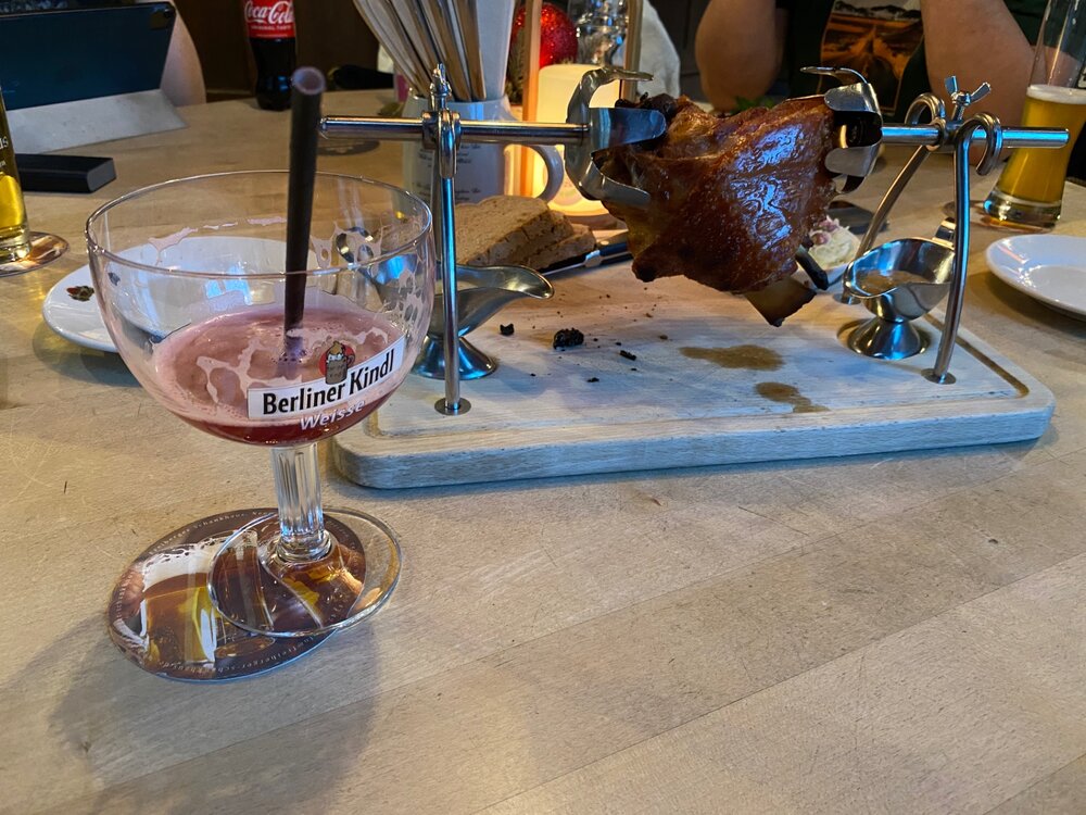 Мы решили пообедать. И скоротать время до темноты. В этом кафе мы уже были с мужем в прошлом году, нам понравилась подача швайнхаксе. Ну и конечно в Германии немецкое пиво! Вкусы на пиво оказались у всех разные)) А это просто милые детальки на домах. Дети в труде😄
