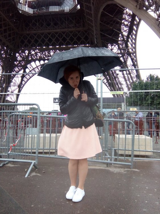 Под самой башней не так романтично, заборы. заборы, толпы. С марсового поля самое то. Был дождь и скатерть самобранку раскинуть негде было. пришлось польскую колбасу есть под зонтом)))
