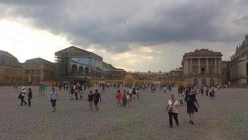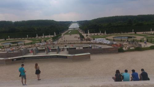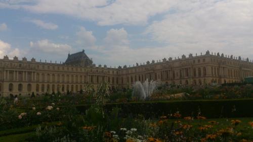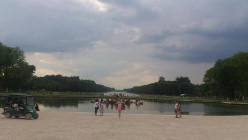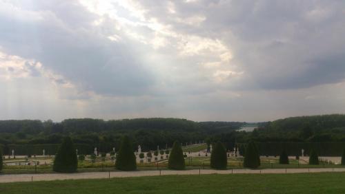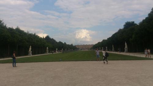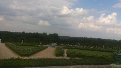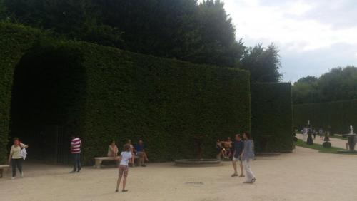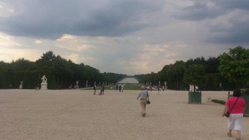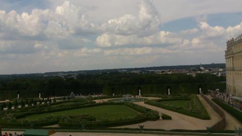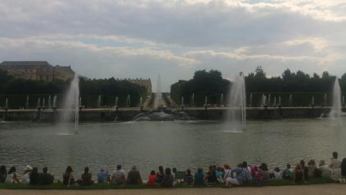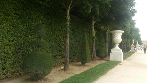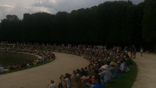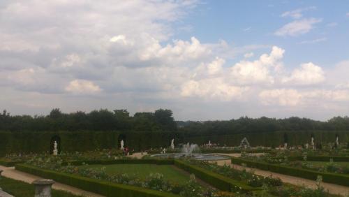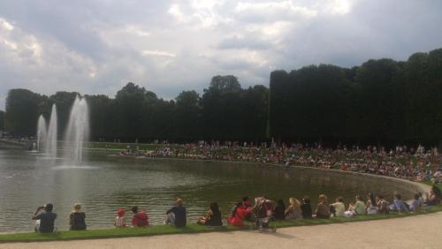 Сады и парк Версаля находятся на части территории прежних королевских владений в Версале и являются частью дворцво-паркового ансамбля Версаля. Территория, равная 815 (по некоторым данным - до 900) гектарам, составляет лишь одну десятую часть прежнего королевского поместья, простиравшегося на 8000 гектаров. Тот, кто здесь побывал, знает, что ходить можно целый день и навряд ли удастся все увидеть. Прекрасные бассейны, фонтаны, статуи, гроты и каскады были созданы для того, чтобы поразить представителей знатных родов 17 века, но и на современного человека они способны производить не менее шокирующее впечатление. Сегодня здесь красуется приблизительно 350 000 деревьев. Все они ухожены и подстрижены так, как это было задумано создателем уникального комплекса. Особенно впечатляют целые стены из них, которыми обрамляются аллеи. Тот, кто выходит из дворца на задний двор, имеет возможность увидеть: два огромных бассейна; по обе стороны от них располагаются партеры; если пойти на юг - Оранжерея и Озеро Швейцарцев;, на север идет Аллея Детей, где можно найти фонтаны "Дракон", "Пирамида" и "Нептун"; если смотреть на план Версальского парка, то видно, что территория с двух сторон от центральной оси разделяется на квадраты. Покрытие этих частей комплекса – стриженая густая трава. Здесь несложно найти разнообразные скульптуры, гроты, театр и другие развлечения; если пойти вдоль центральной оси, наткнетесь на знаменитые фонтаны Латоны и Апполона. За фонтаном Апполона виден Большой канал («маленькая Венеции»), по котором любил кататься Людовик XIV; Садовый центр Версаль – это не только трава, деревья, фонтаны и скульптуры. Туристы, которые бродят извилистыми аллеями комплекса, чаще всего неожиданно для себя встречают мини-дворцы, которые во многом повторяют центральное здание (Большой и Малый Трианон)4 особую ценность для туристов представляет Ферма Марии-Антуанетты, расположенная в саду возле дворца, на берегу Большого озера. Там в свое время кипела бурная «деревенская» жизнь, в которую любила погружаться королева. На ферме было и есть все от коров и свиней до мельницы и сыроварни. Итак, пойдем осмотримся. Проходим через охрану с рамками металлоискателей, попадаем в садово-парковую часть...Нам кратко разъяснили куда мы можем успеть сходить, как можно перемещаться, показали план местности, особенно посоветовали посмотреть "танцующие" фонтаны, которые "танцуют" под звуки классической музыки в определенное время. Ближайший из них начинал "танцевать" около 18 вечера (возможно в 17.50). Решили, сходить к нему, но для начала осмотреться по округе...Кстати, про перемещение...Существует несколько способов перемещаться по парку: на велосипеде, на гольф-каре, пешком, на лодке или воспользоваться небольшим поездом-шаттлом... Вдоль всего западного фасада дворца, выходящего в парк, раскинулся водный партер с просторными газонами и фигурными бассейнами, обрамленными низкими гранитными парапетами с установленными на них вазами и статуями... Вот такая округа, которую мы увидели поблизости дворца. Теперь самое время дойти до "танцующего" фонтана. И занять свободное место, народу тут уже всякого-разного предостаточно. Ожидание, ожидание, гвалт...наконец, зазвучала классическая музыка ... ей в такт заиграли струи фонтана - пенящиеся воды и веселые брызги - все вокруг преображается